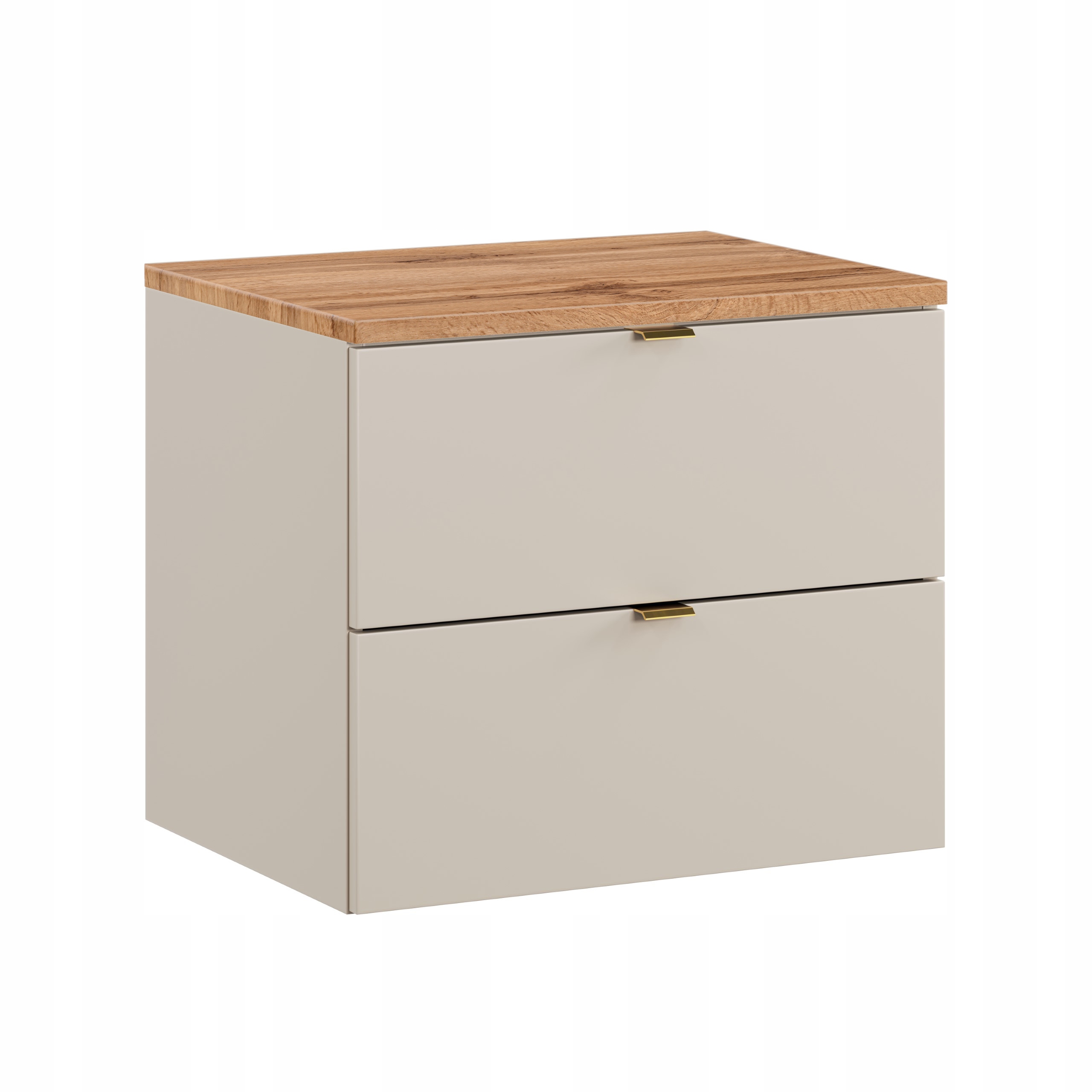 Zestaw z kolekcji DALIA składający się z szafki pod umywalkę 60 cm oraz blatu w dekorze dąb wotan to połączenie eleganckiej prostoty z naturalnym akcentem. Gładkie fronty w modnym odcieniu kaszmiru wprowadzają do łazienki subtelną elegancję, natomiast blat w kolorze dębu wotan dodaje całości ciepła i ponadczasowego charakteru inspirowanego naturą.