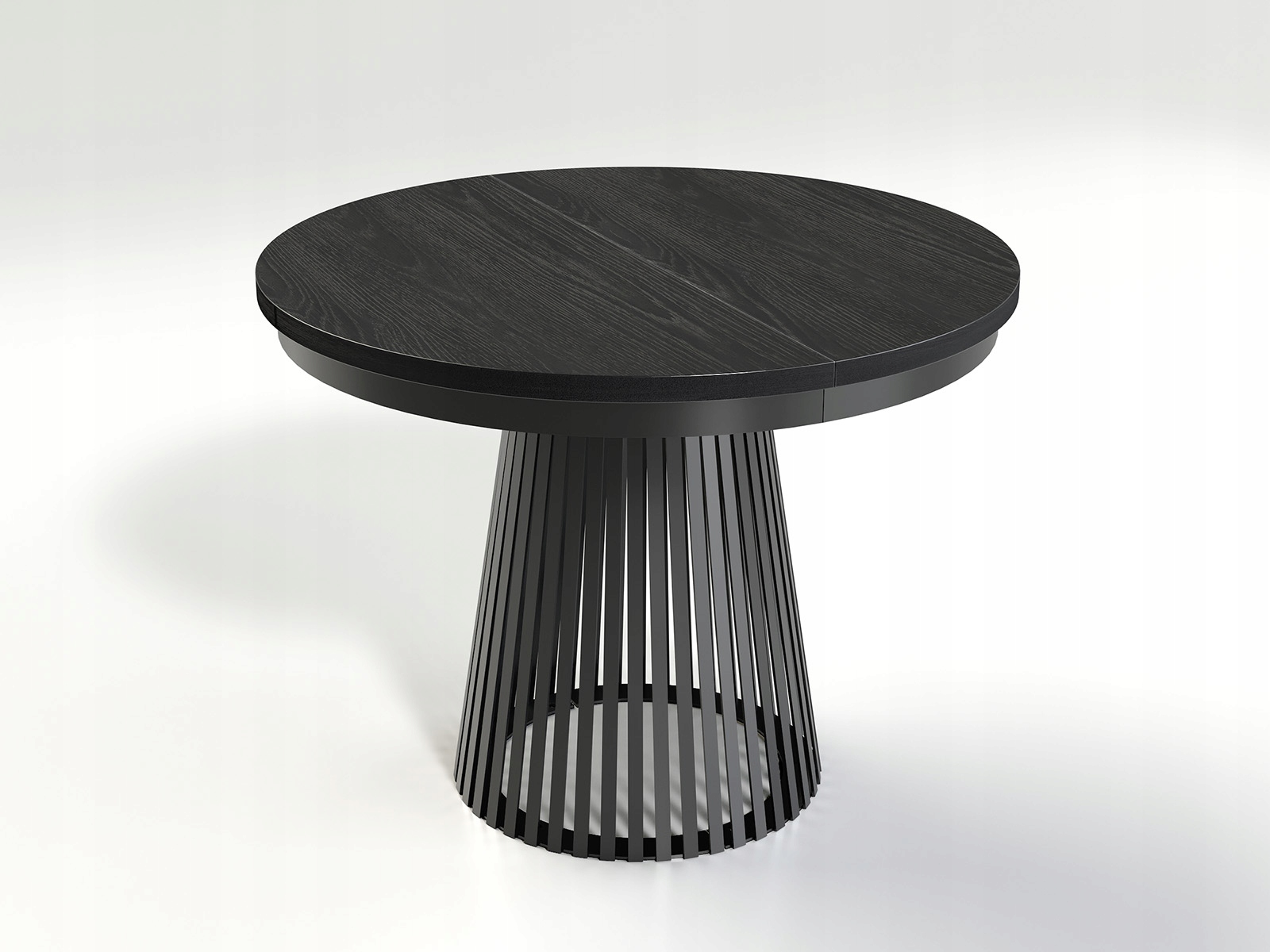 Najbardziej charakterystycznym elementem stołu jest jego podstawa – wykonana z pionowych, stalowych lameli malowanych proszkowo na czarno. Taka konstrukcja nie tylko przyciąga wzrok, ale również nadaje całej bryle lekkości i nowoczesnego wyrazu. Stół doskonale wpisze się w aranżacje loftowe, industrialne lub nowoczesne, stanowiąc praktyczną i elegancką ozdobę wnętrza. Wkładki przechowuje się osobno. Produkt w całości został wyprodukowany w Polsce.