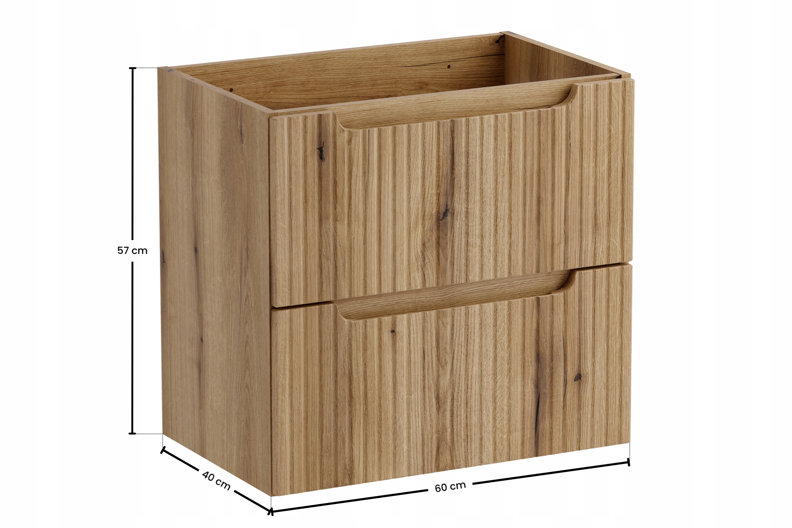 • Szafka łazienkowa 60 cm – szerokość 60 cm, wysokość 57 cm, głębokość 39 cm