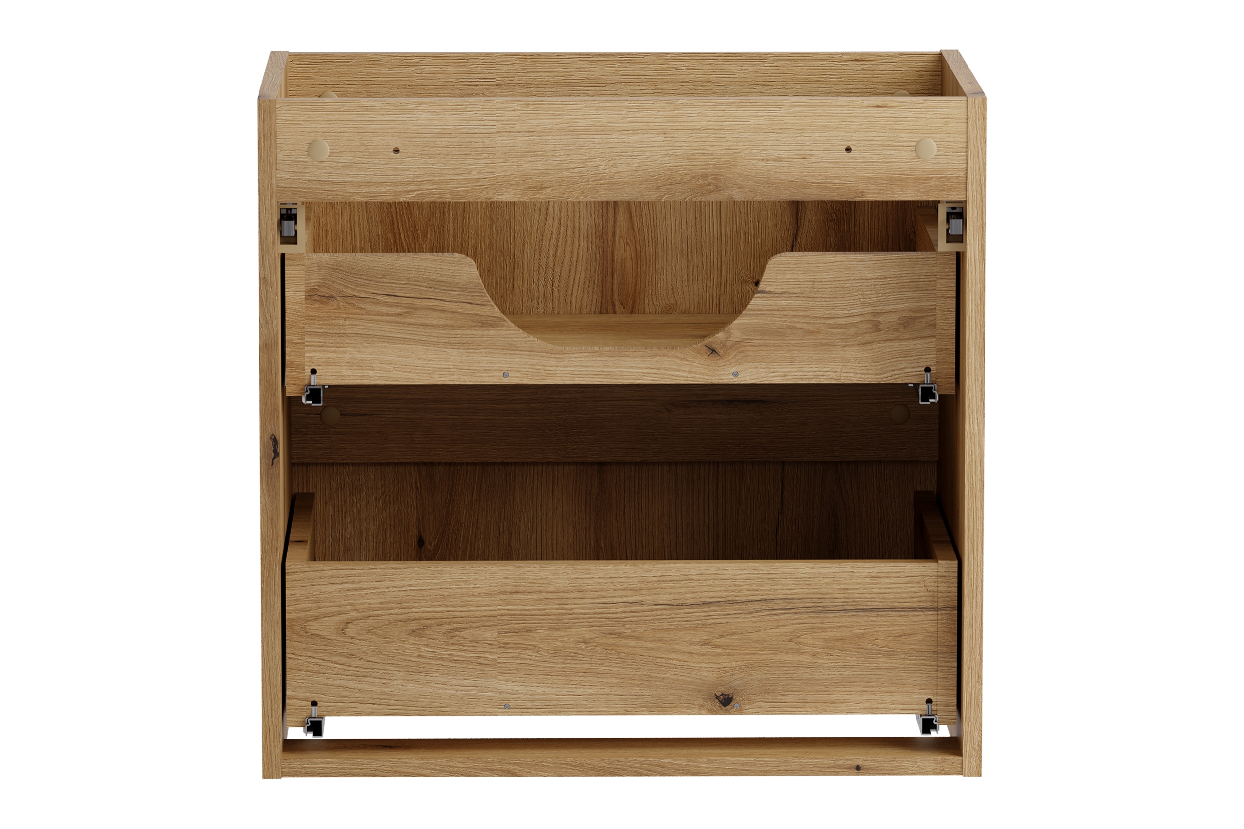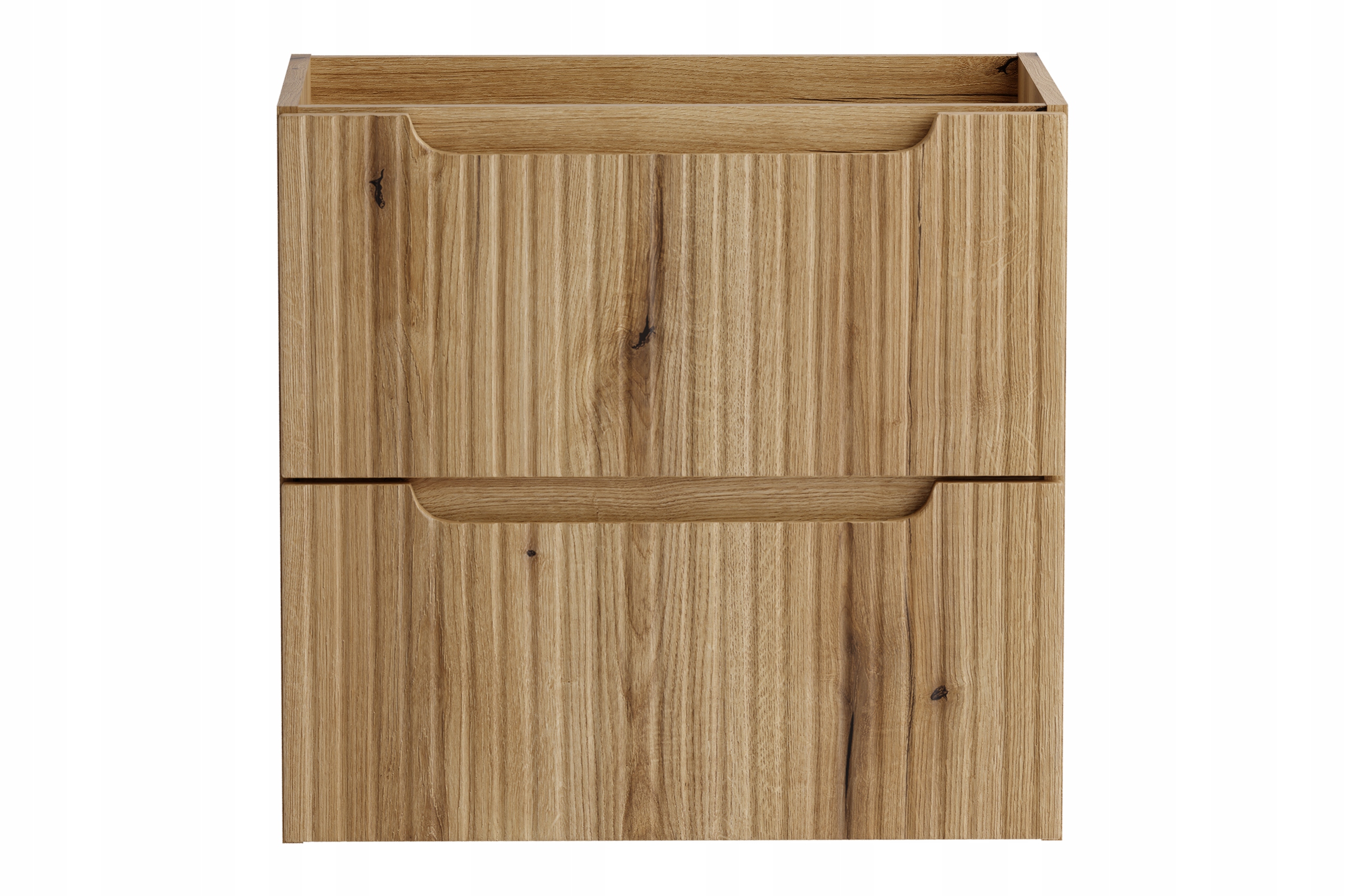 Kolekcja Nova w dekorze dąb Coast Evoke łączy naturalne ciepło drewna z eleganckimi, pionowymi ryflowaniami oraz minimalistyczną formą. Kompaktowy zestaw o szerokości 100 cm wpisuje się w nowoczesne aranżacje łazienek, zapewniając harmonijny wygląd i funkcjonalność nawet w mniejszych pomieszczeniach. Otwarta forma bocznych regałów dodaje lekkości i pozwala wyeksponować dekoracje lub ręczniki.