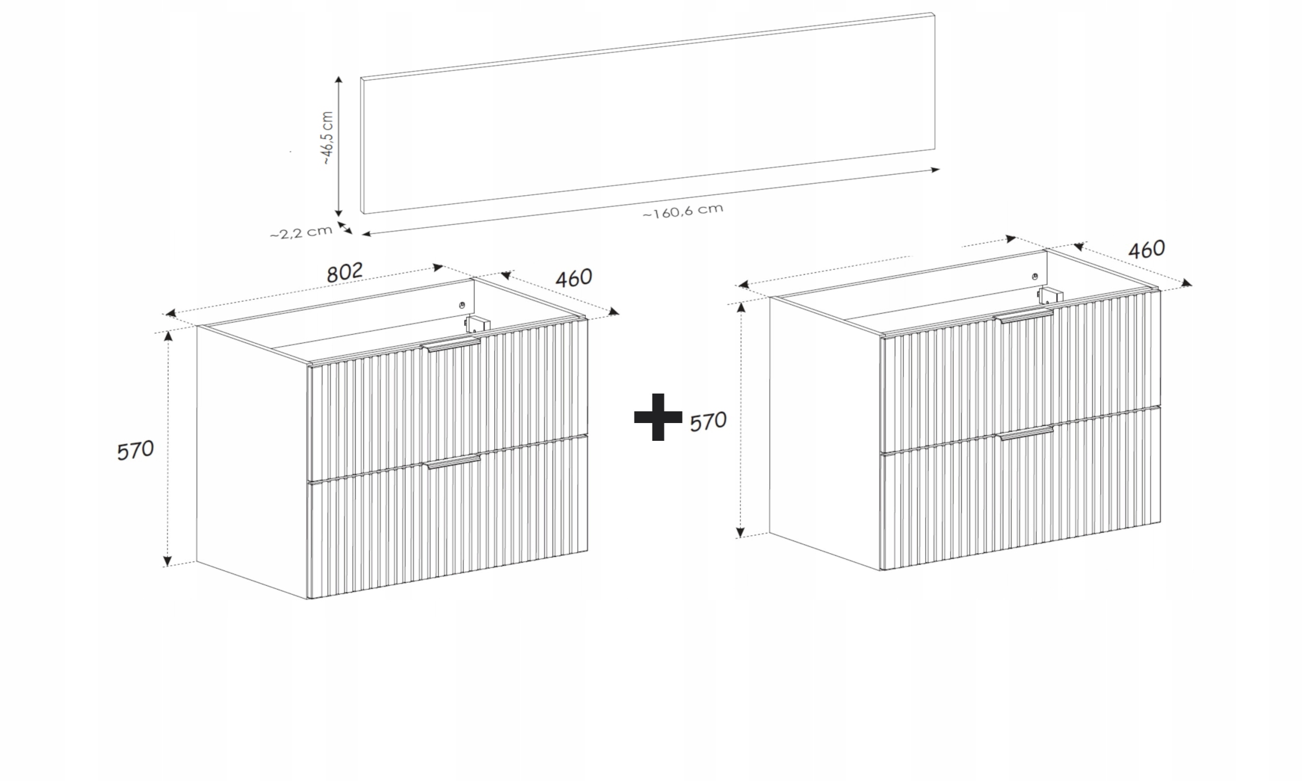 Zestaw łazienkowy ADEL 160 cm to nowoczesna i funkcjonalna propozycja do eleganckiej łazienki. Komplet składa się z dwóch białych szafek 80 cm oraz blatu 160 cm w kolorze dąb wotan, tworząc szeroką, praktyczną zabudowę z naturalnym akcentem drewna.