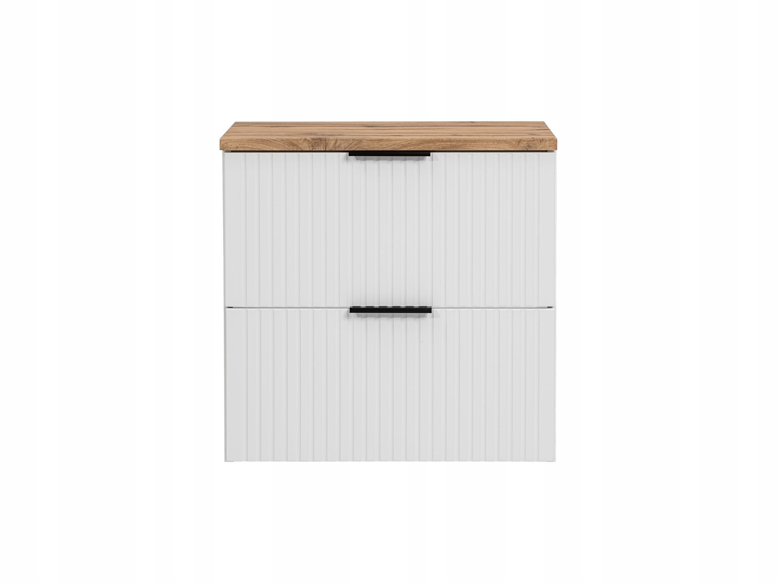 Szafka łazienkowa ADEL 60 cm w kolorze białym z blatem w kolorze dąb wotan to nowoczesne i funkcjonalne rozwiązanie do łazienki, które łączy jasną, ponadczasową kolorystykę z naturalnym akcentem drewna. Białe ryflowane fronty nadają meblowi elegancki charakter, a blat w odcieniu dąb wotan ociepla aranżację i świetnie komponuje się z modnymi dodatkami łazienkowymi.