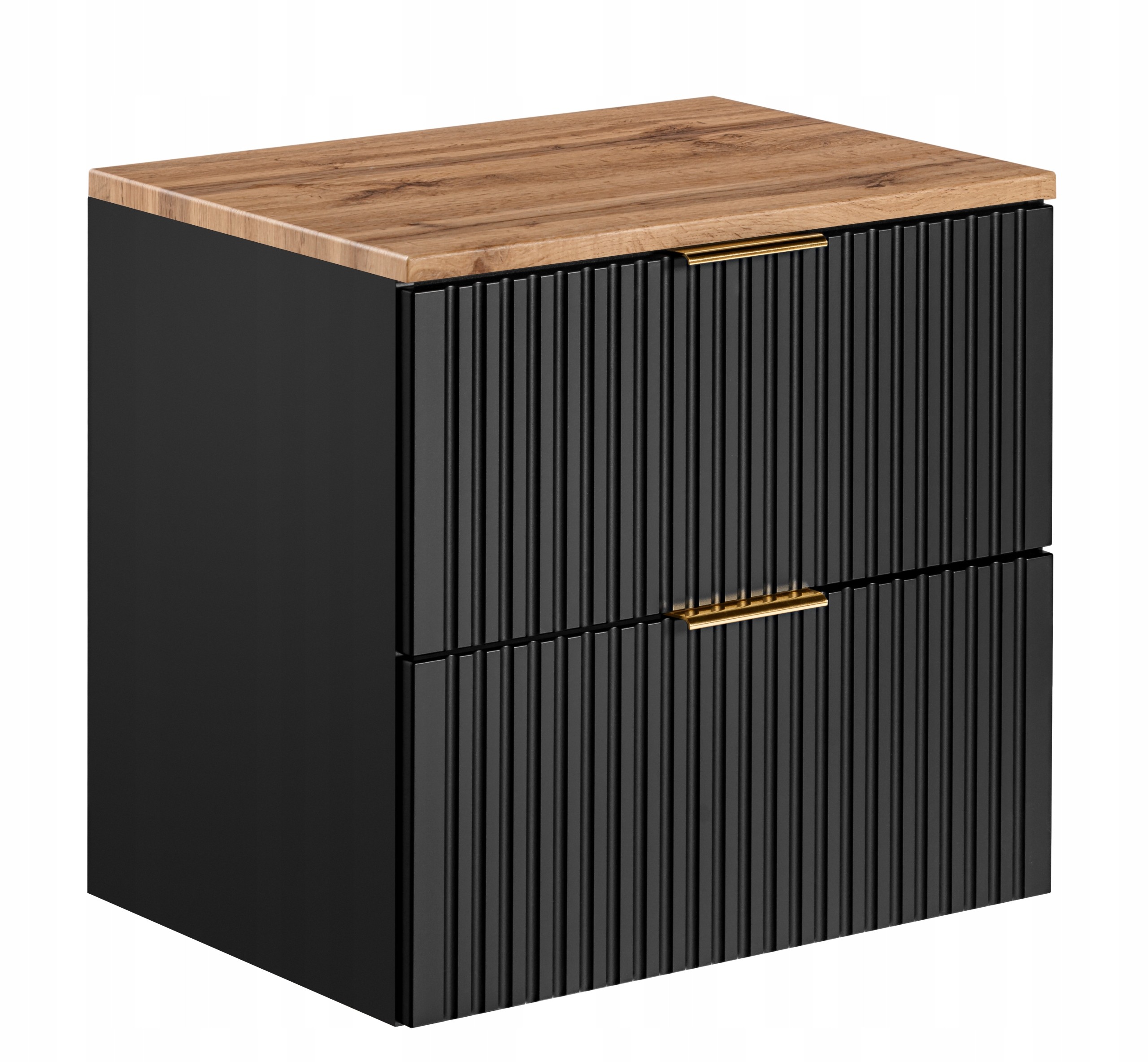 Szafka pod umywalkę ADEL BLACK 60 cm z blatem to idealne połączenie nowoczesnego designu i praktyczności, które wzbogaca każdą łazienkę. Korpus w czarnym macie z szarym akcentem oraz ryflowane fronty nadają meblom elegancki charakter.