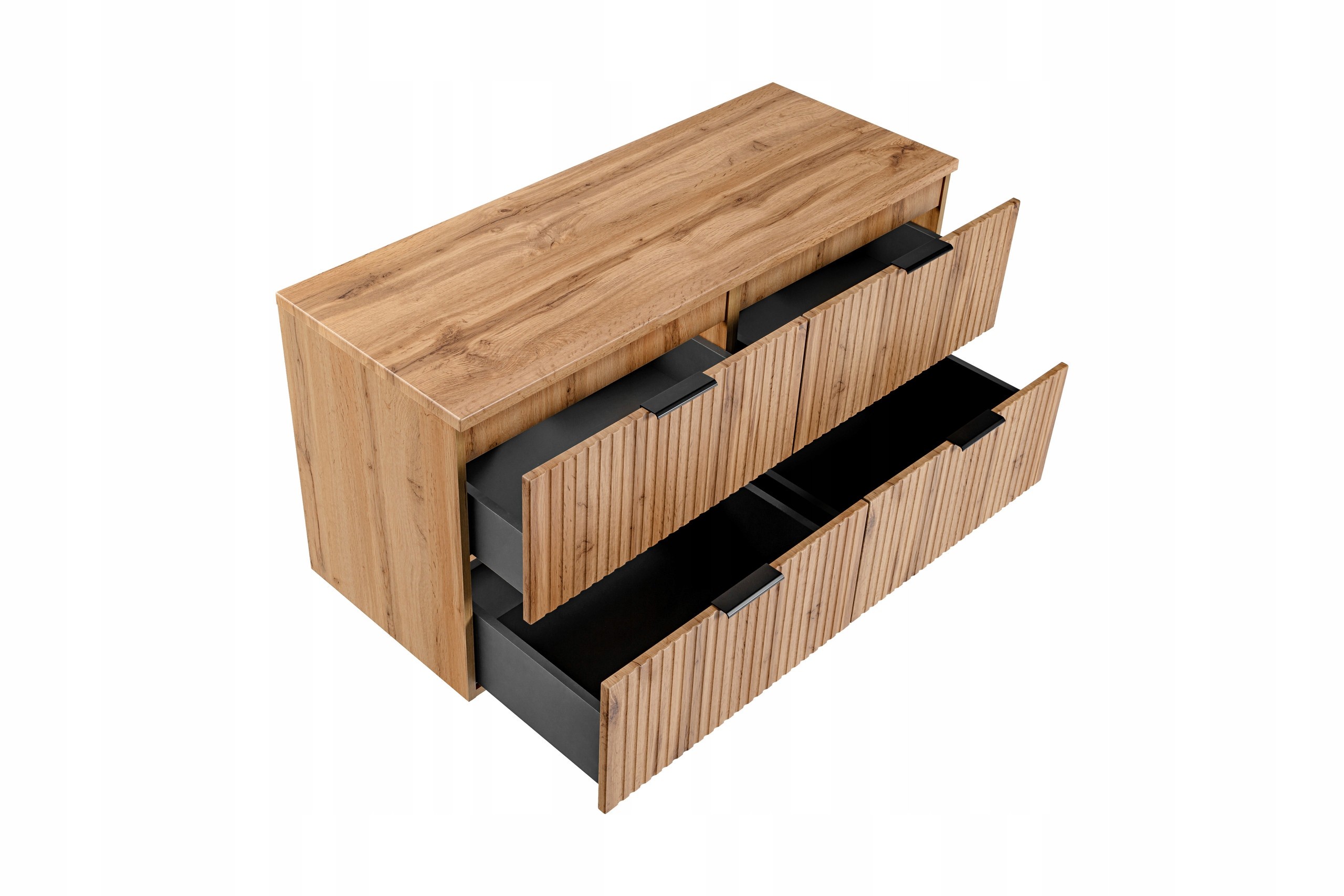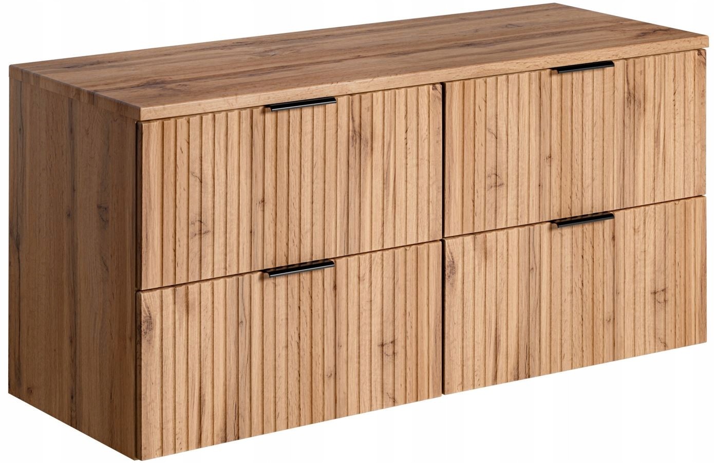 Szafka łazienkowa ADEL DĄB WOTAN to idealne połączenie funkcjonalności i stylu. Jej ryflowane fronty w ciepłym odcieniu dębu wprowadzą naturalny i przytulny charakter do każdej łazienki, a nowoczesna forma mebla zapewnia elegancki wygląd. Możliwość wyboru uchwytów w kolorze złotym, chromowym lub czarnym matowym pozwala na dostosowanie wyglądu szafki do indywidualnych preferencji.