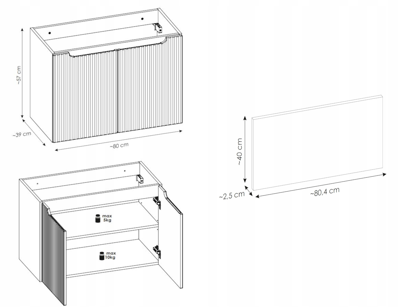 Szafka wisząca NOVA WHITE z eleganckim białym blatem to idealne rozwiązanie dla nowoczesnych i minimalistycznych łazienek. Dzięki dwóm pojemnym drzwiom oraz praktycznej półce wewnętrznej oferuje dużą przestrzeń do przechowywania, pomagając w utrzymaniu porządku. Ryflowane fronty oraz subtelne, frezowane uchwyty nadają jej wyrafinowanego wyglądu, który wprowadza do wnętrza nutę elegancji. Zastosowany system SOFT CLOSE zapewnia ciche i wygodne użytkowanie, a wisząca konstrukcja sprawia, że łazienka wygląda na bardziej przestronną.