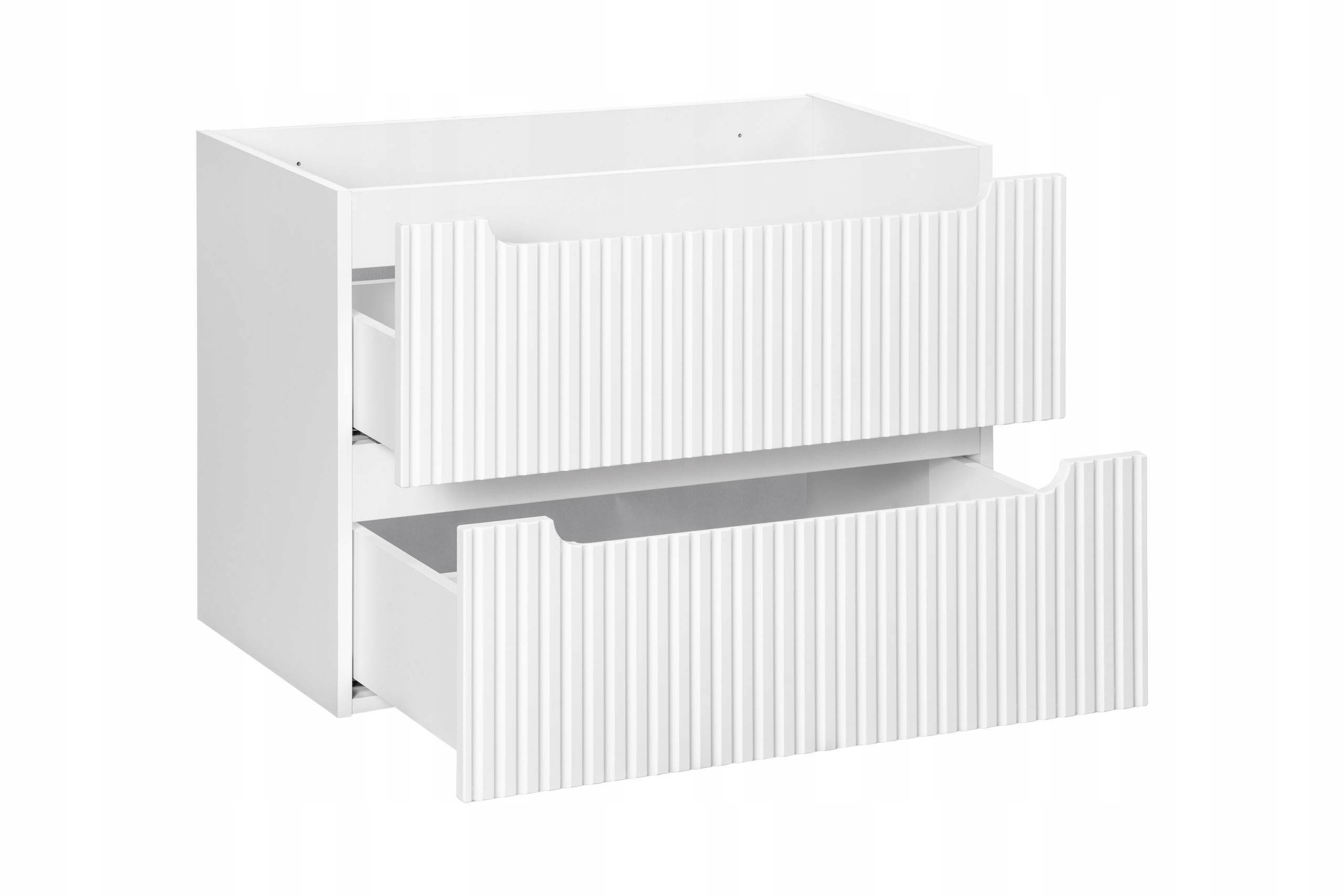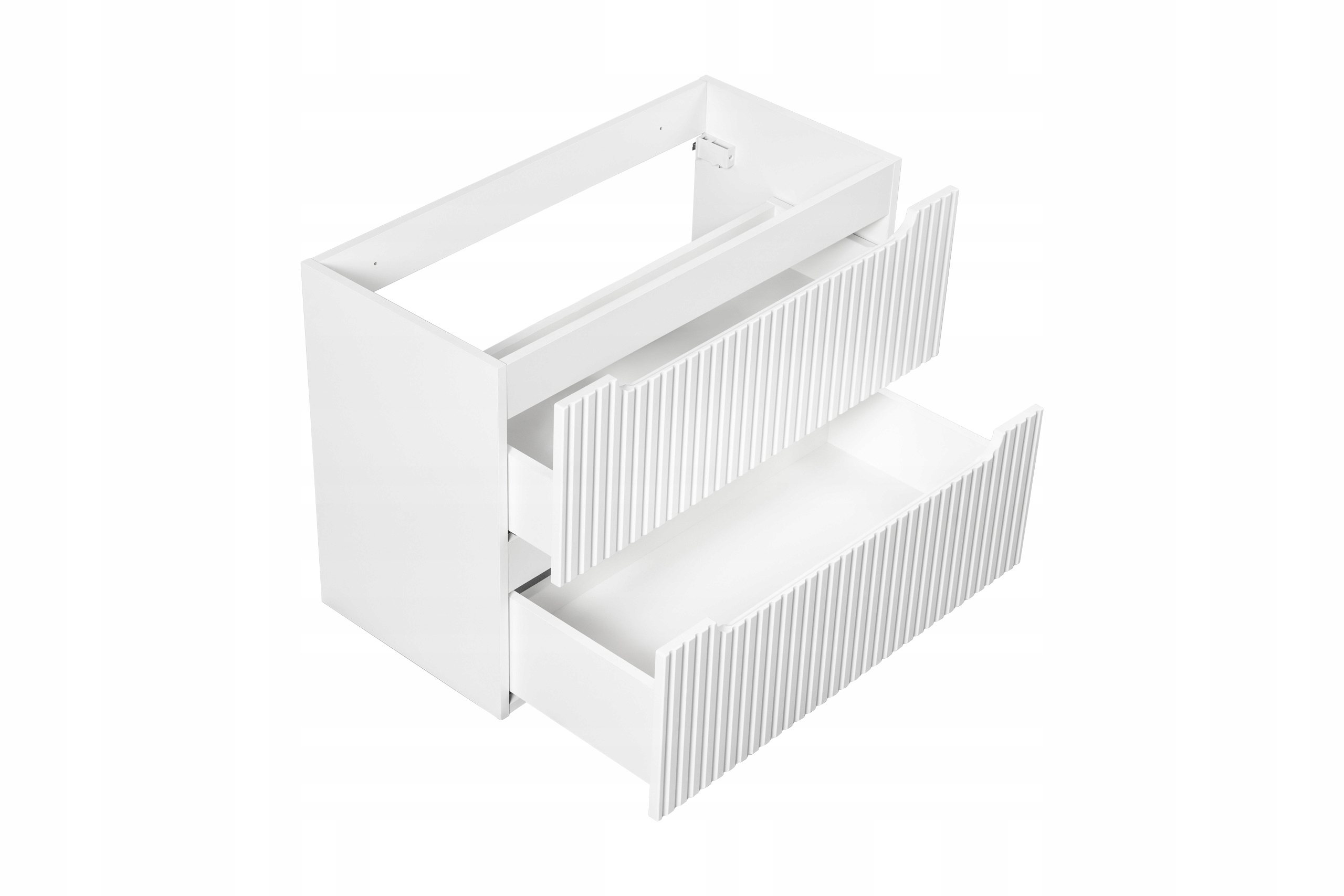 Szafka wisząca NOVA WHITE z eleganckim blatem to doskonały wybór do nowoczesnej łazienki, oferujący styl i funkcjonalność. Wyposażona w 2 pojemne szuflady z systemem SOFT CLOSE, zapewnia wygodę użytkowania i organizację przestrzeni. Charakterystyczne ryflowane fronty oraz subtelnie frezowane uchwyty nadają meblowi unikalny wygląd, który doda wnętrzu wyjątkowego stylu. Dzięki optymalnej głębokości i solidnej konstrukcji mebel idealnie komponuje się w mniejszych przestrzeniach, tworząc harmonijną całość z innymi elementami z kolekcji Nova White, podkreślając piękno i funkcjonalność łazienki.