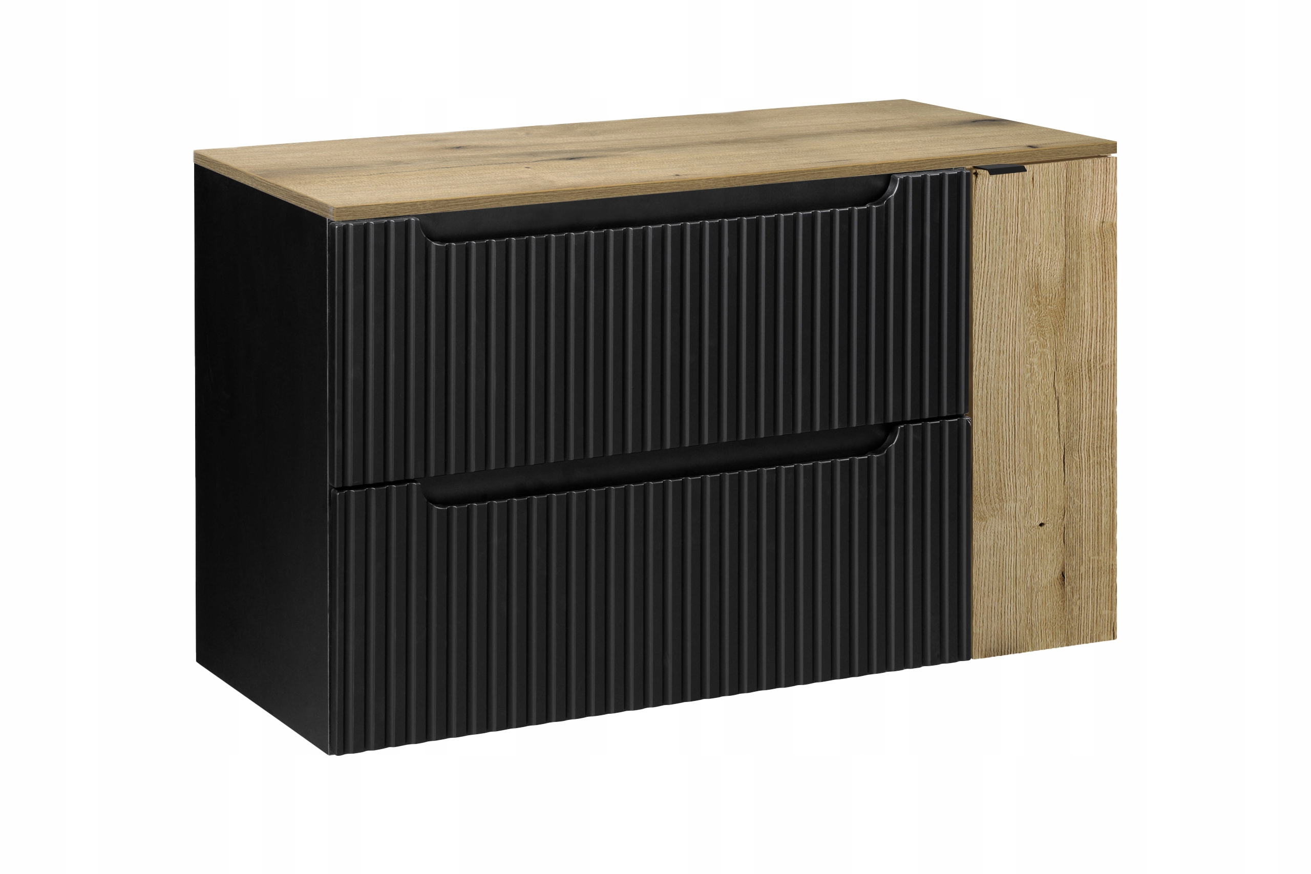 Wyposażona w system SOFT CLOSE zapewnia komfort użytkowania poprzez ciche i płynne zamykanie drzwi i szuflad, co zwiększa wygodę na co dzień. Frezy we froncie oraz elegancki metalowy uchwyt podkreślają nowoczesny styl mebla, a wykończenie w odcieniach dębu i czerni wprowadza ciepły, naturalny akcent. Kolekcja NOVA BLACK to synonim ponadczasowej klasy i stylu, która sprawdzi się w każdej łazience, nadając jej elegancji i funkcjonalności.