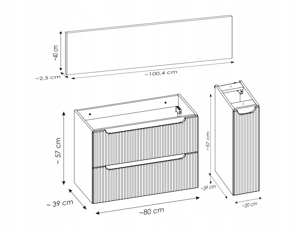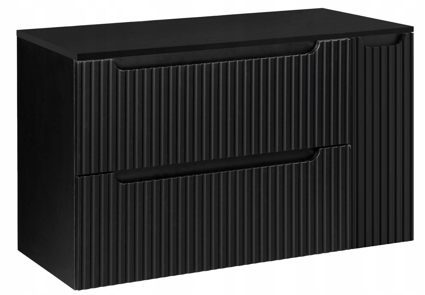 Szafka wisząca pod umywalkę NOVA BLACK to kwintesencja elegancji i funkcjonalności, która doskonale wpisuje się w nowoczesne wnętrza łazienkowe. Wyposażona w dwie szuflady i jedno drzwi oraz wzbogacona o ryflowane fronty i frezowane uchwyty, tworzy harmonijną całość, dodając wnętrzu głębi i stylu.