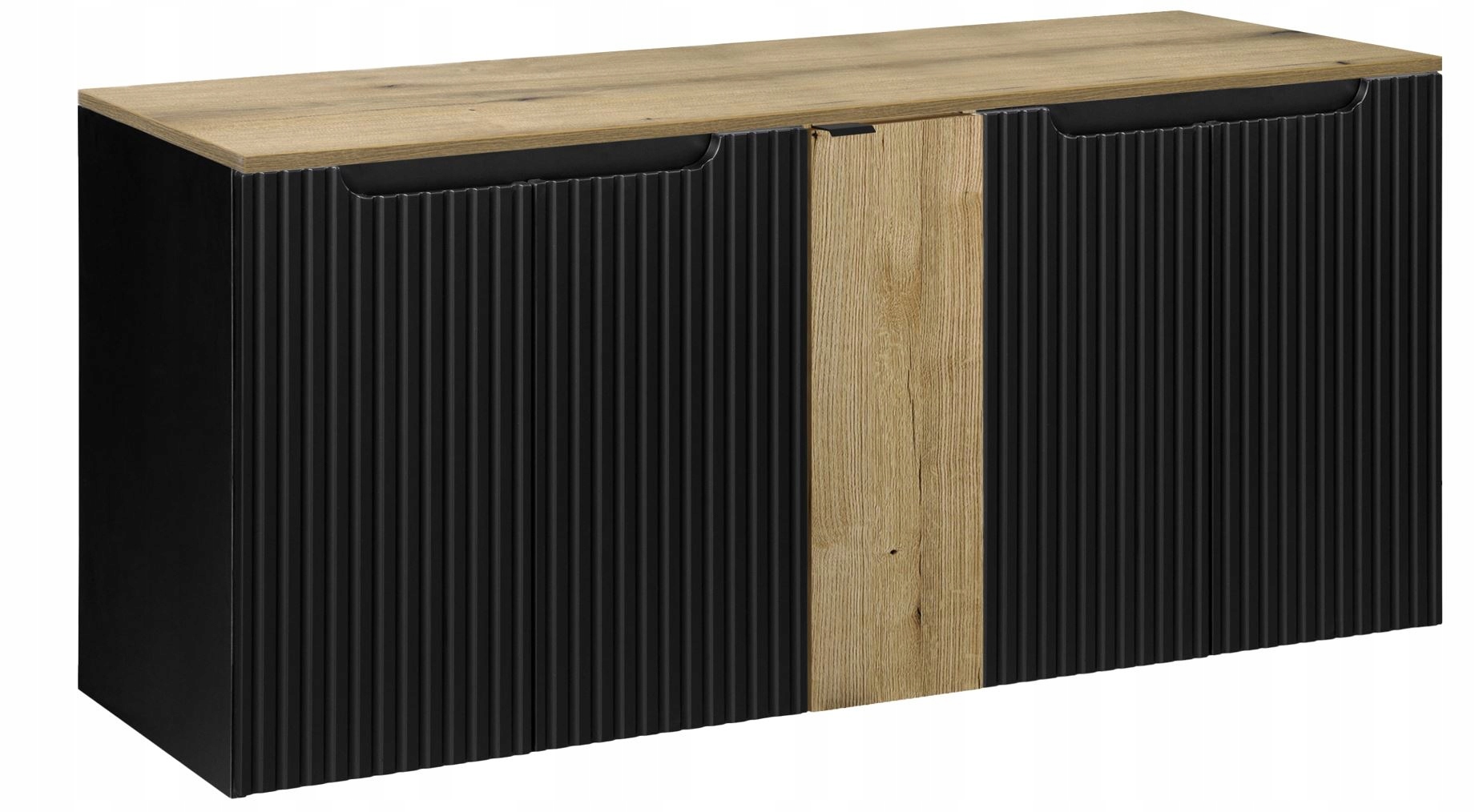 Szafka pod umywalkę z kolekcji NOVA BLACK z blatem w kolorze dębu to harmonijne połączenie nowoczesnego designu z naturalnym akcentem, które nada każdej łazience elegancki, a zarazem przytulny charakter. Fronty z charakterystycznym ryflowaniem oraz subtelne uchwyty chromowane dodają szafce wyrafinowanego stylu, który doskonale wpasuje się w minimalistyczne i klasyczne wnętrza.