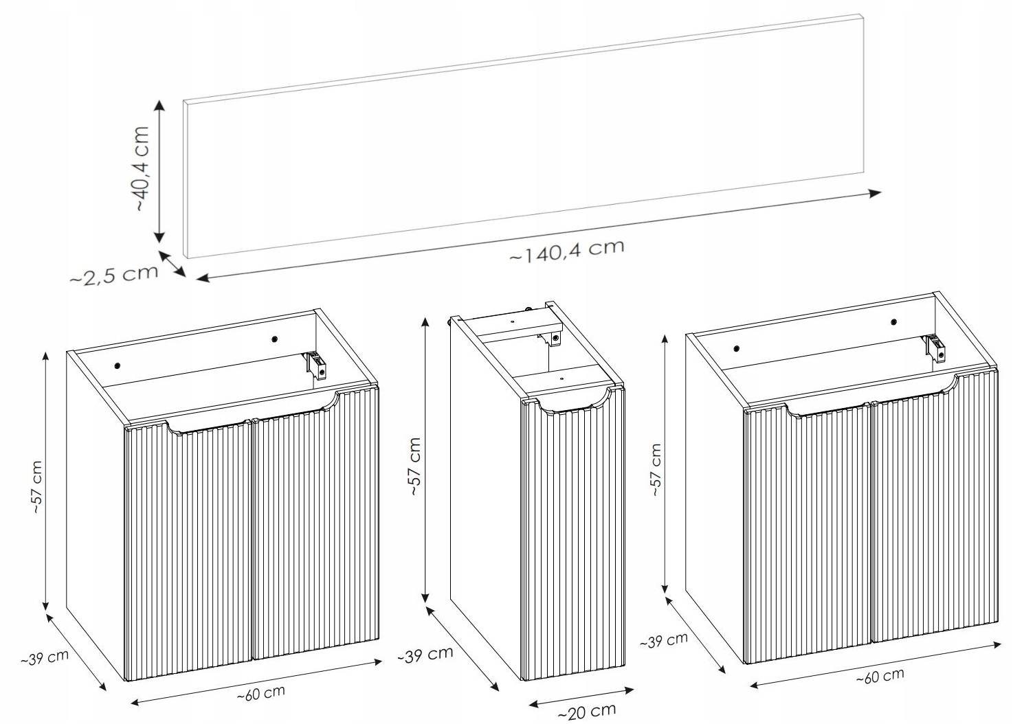 Model wyposażony jest w pięć drzwi z systemem cichego domyku SOFT CLOSE, co zapewnia komfort użytkowania i cichą pracę, a wewnętrzne półki pomagają utrzymać porządek. Frezowane uchwyty dodają minimalistycznego uroku, a blat jest doskonałą podstawą do umywalki, która wzbogaca łazienkę o dodatkową funkcjonalność.