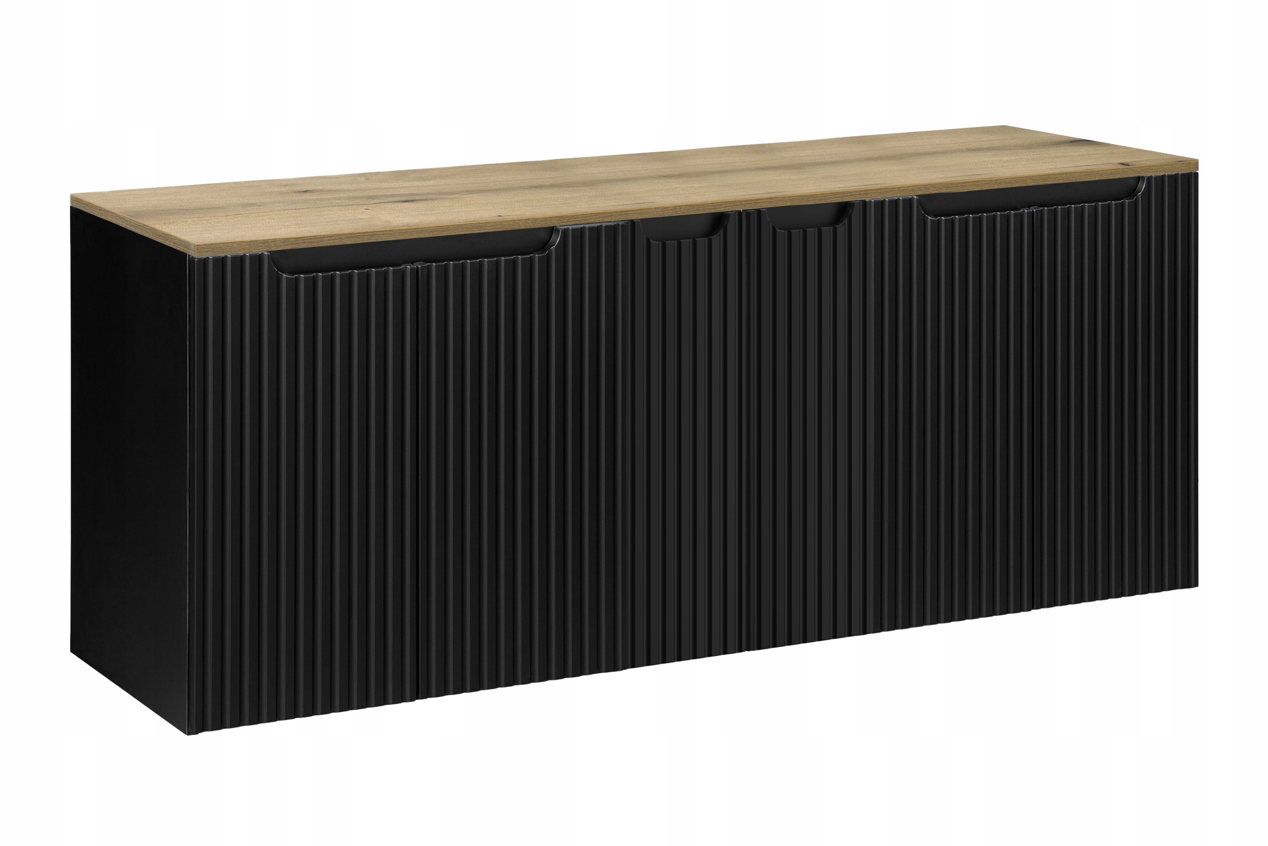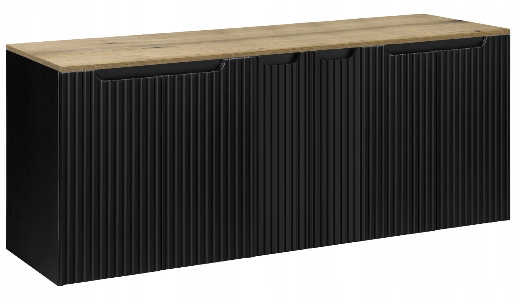 Szafka pod umywalkę z kolekcji NOVA BLACK to doskonały wybór dla tych, którzy poszukują elegancji i funkcjonalności w łazienkowym wyposażeniu. Wyróżniają ją ryflowane fronty oraz solidny blat dąb evoke o długości 160 cm, który nadaje wnętrzu ciepły, naturalny charakter. Z sześcioma drzwiami, szafka zapewnia przestronne miejsce do przechowywania, które z łatwością pomieści wszystkie niezbędne akcesoria łazienkowe.