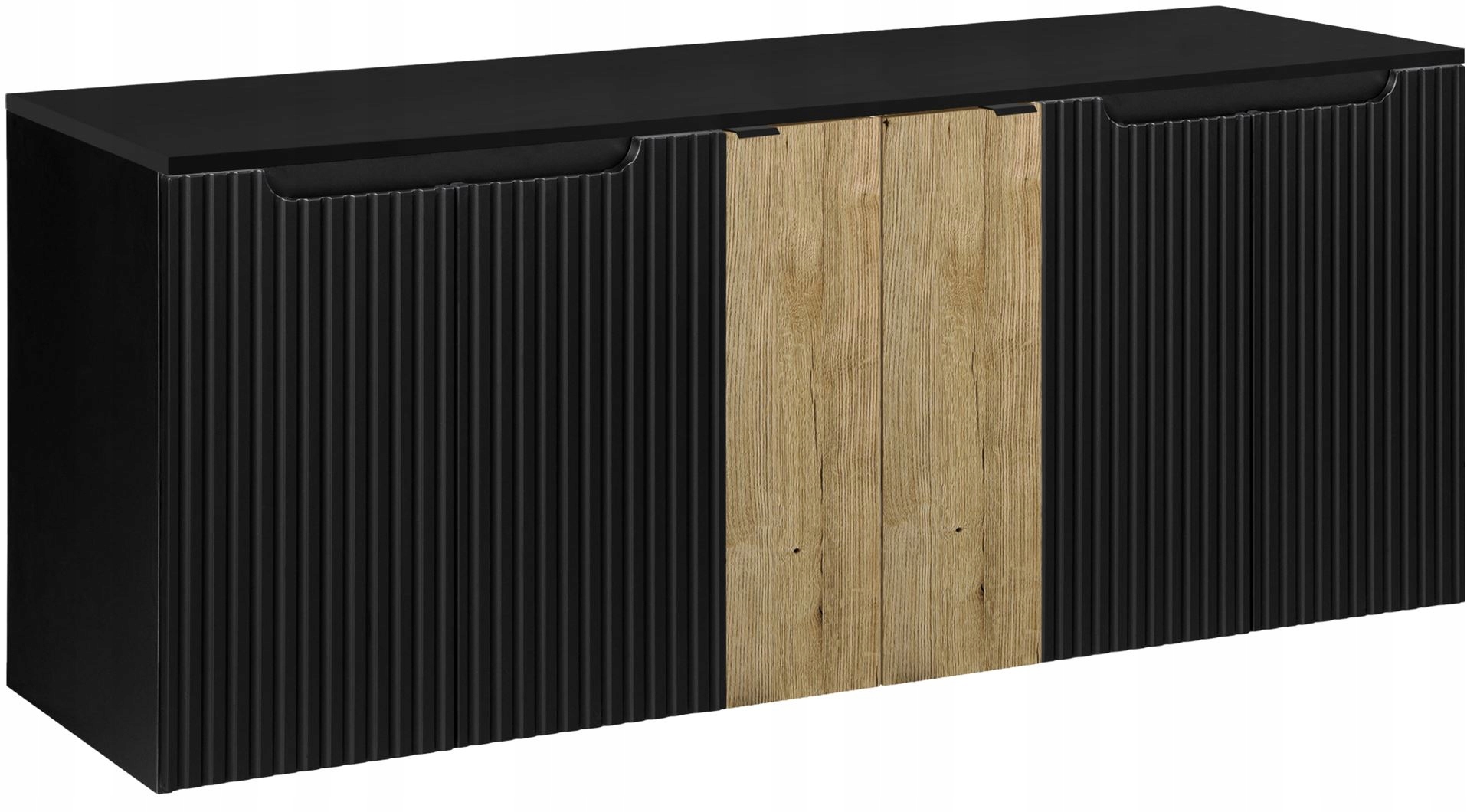 Szafka pod umywalkę z kolekcji NOVA BLACK to synonim elegancji i funkcjonalności, która doskonale uzupełni każde nowoczesne wnętrze. Połączenie czerni z wykończeniem w kolorze dębu nadaje przestrzeni ciepła i klasy, a ryflowane fronty podkreślają oryginalność designu. Model ten, wyposażony w aż sześć drzwi, pozwala na doskonałą organizację przestrzeni, dzięki czemu każda łazienka zyskuje na uporządkowanym i estetycznym wyglądzie.