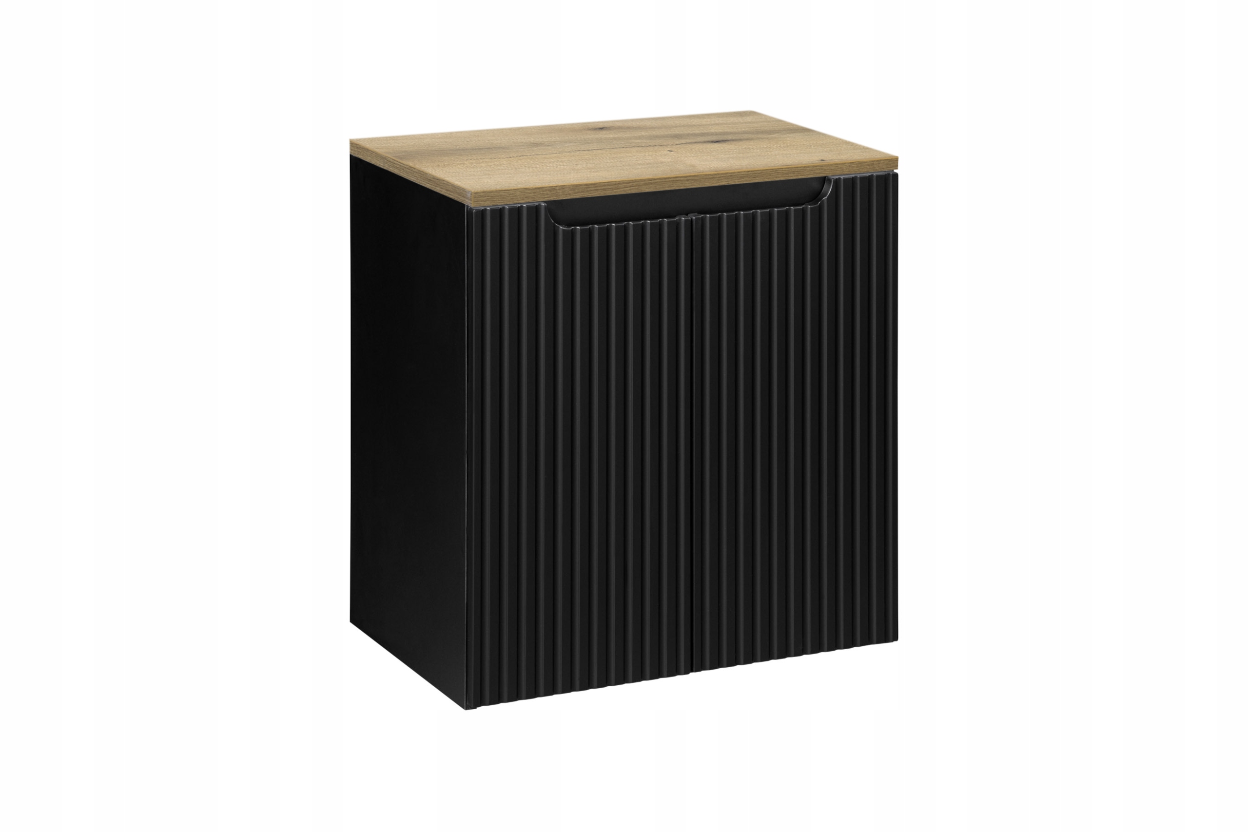 Szafka pod umywalkę z kolekcji NOVA BLACK to elegancka propozycja dla osób ceniących sobie styl i wygodę w kompaktowym wydaniu. Dzięki ryflowanym frontom i subtelnym, frezowanym uchwytom, mebel ten wprowadza do łazienki nowoczesny charakter, jednocześnie zapewniając praktyczną przestrzeń do przechowywania. Dwa drzwi oraz wewnętrzna półka oferują doskonałą organizację nawet w niewielkich łazienkach.