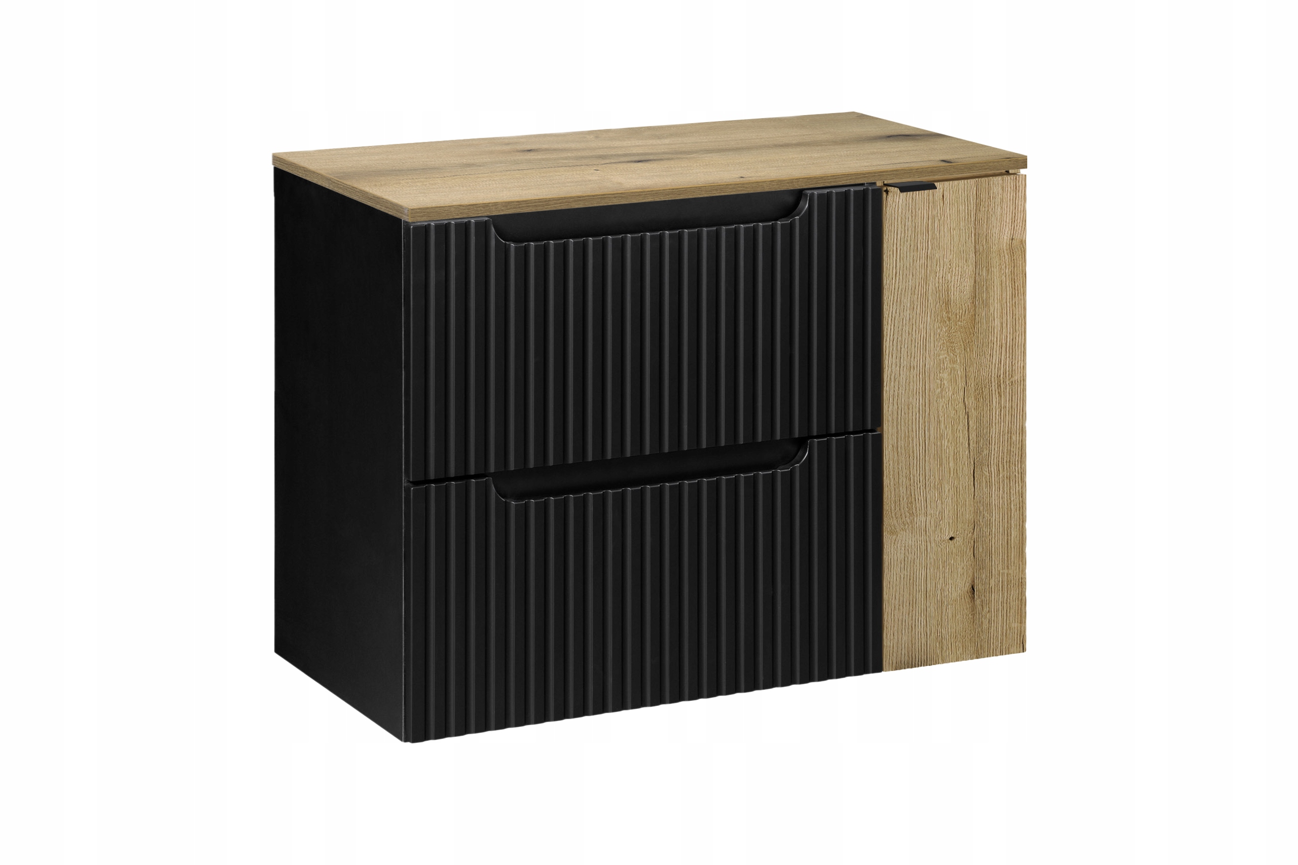 Szafka pod umywalkę z kolekcji NOVA BLACK to elegancja zamknięta w minimalistycznej formie, idealnie pasująca do nowoczesnych wnętrz łazienkowych. Wyposażona w charakterystyczne ryflowane fronty oraz wykończenie w ciemnym odcieniu, nadaje pomieszczeniu wyrafinowany wygląd, a kompaktowy rozmiar umożliwia jej umieszczenie nawet w ograniczonej przestrzeni.