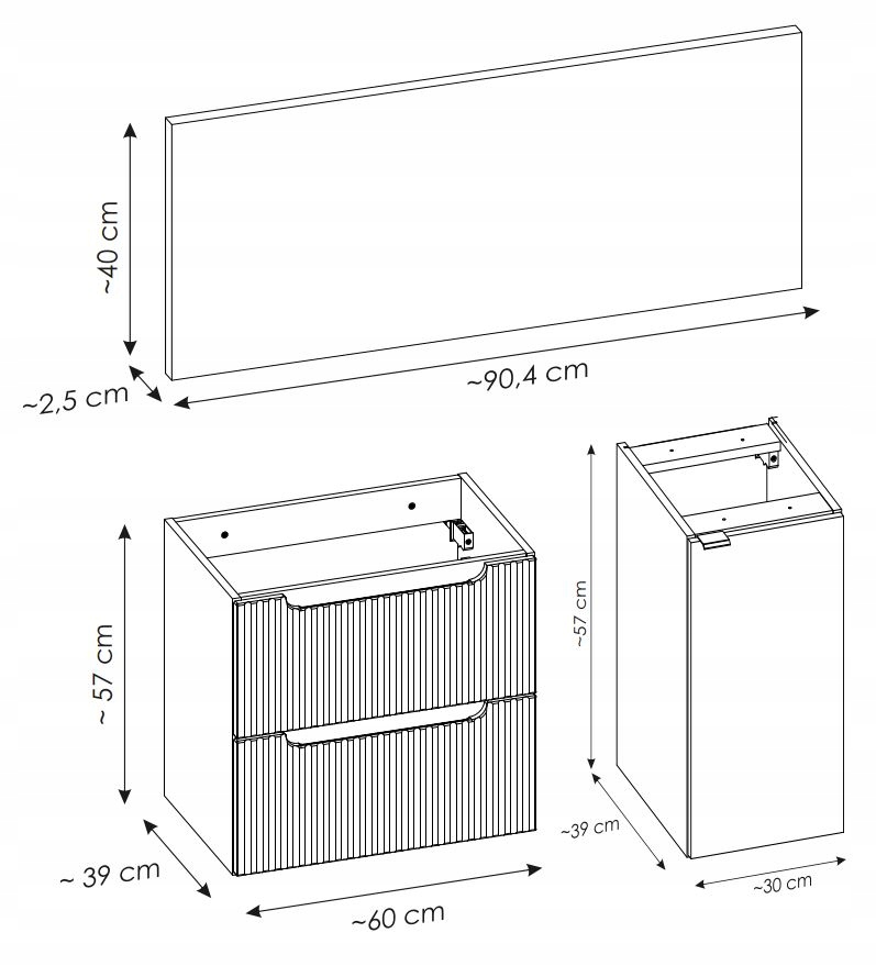 Szafka wyposażona jest w jedne drzwi oraz dwie szuflady, co zapewnia wygodę przechowywania. Zastosowane zawiasy oraz prowadnice z funkcją cichego domyku (SOFT CLOSE) gwarantują komfort użytkowania. Wisząca konstrukcja ułatwia utrzymanie czystości i nadaje łazience nowoczesny charakter, idealnie sprawdzając się w ograniczonych przestrzeniach. Szafka dostępna jest z uniwersalnym frontem, który można zamontować po lewej lub prawej stronie, dostosowując ją do potrzeb wnętrza.