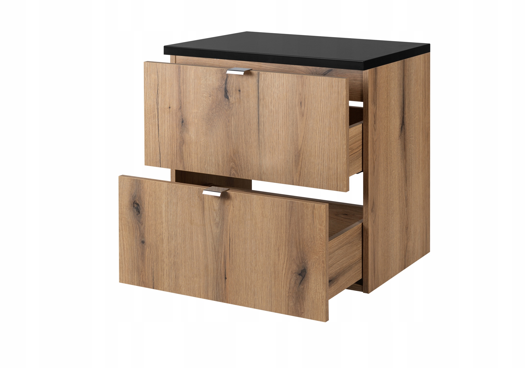 Elegancka szafka pod umywalkę z serii NOVA OAK oferuje doskonałe połączenie stylu i funkcji. Wykonana z dębu coast evoke, wyróżnia się nowoczesnym designem oraz minimalistycznym wykończeniem. Dwie przestronne szuflady z prowadnicami SOFT CLOSE zapewniają płynne, ciche otwieranie i zamykanie.