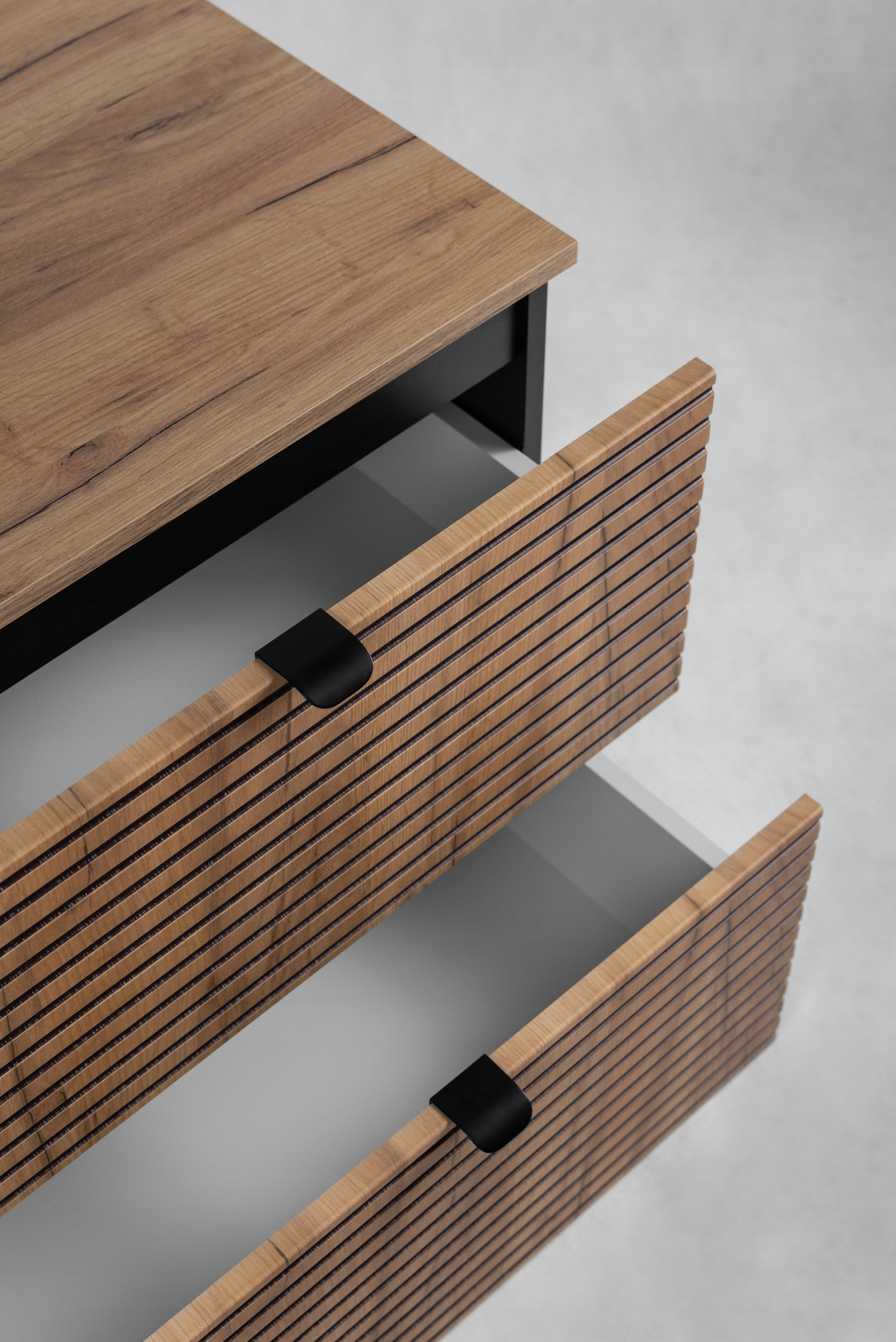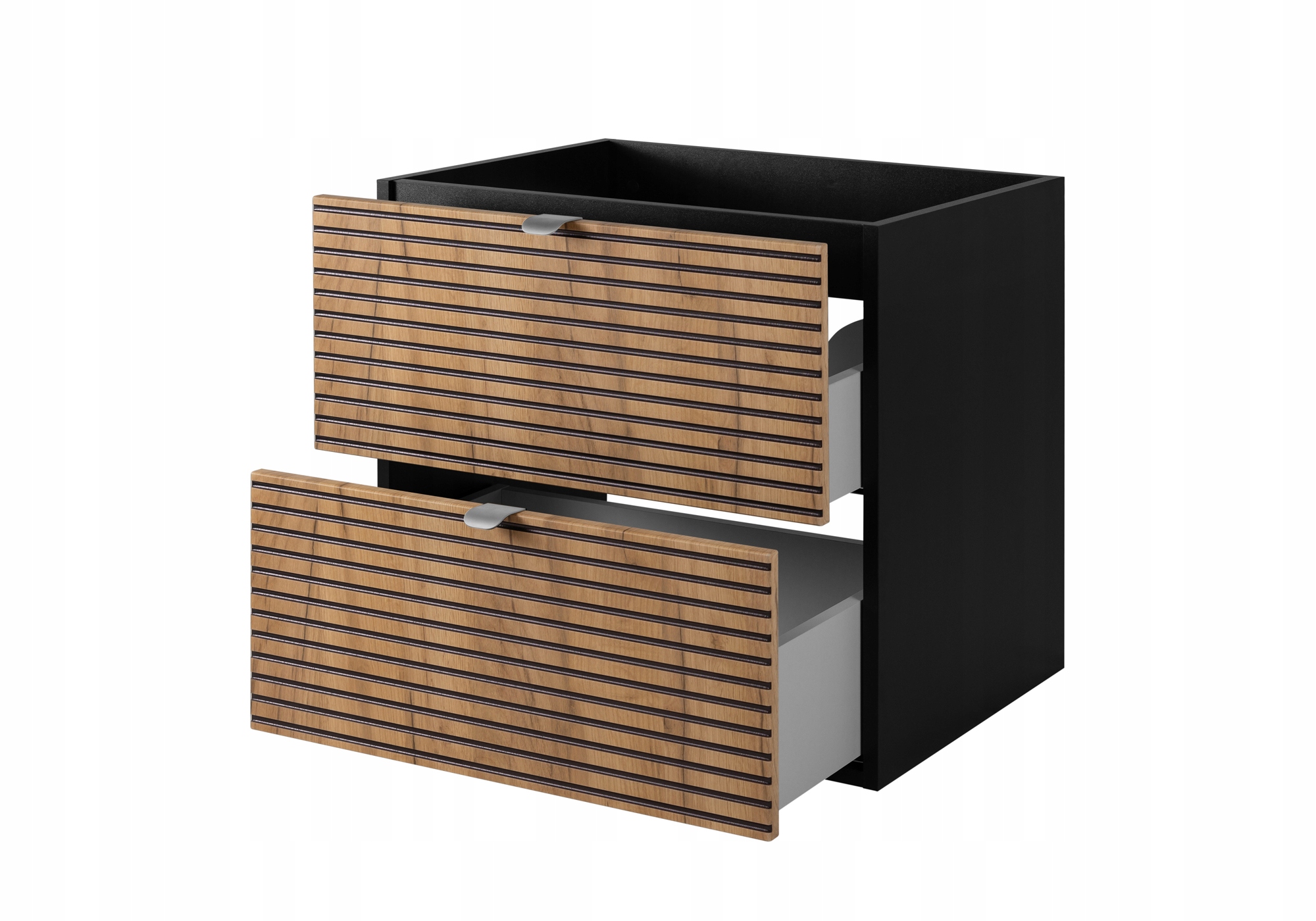 Szafka pod UMYWALKĘ z BLATEM 60 cm AURA to doskonały wybór dla osób ceniących sobie nowoczesny styl i funkcjonalność w łazience. Kolekcja AURA łączy elegancki czarny kolor z frontami w odcieniu dąb craft złoty, tworząc harmonijną i stylową przestrzeń. Szafka wyposażona jest w dwie praktyczne szuflady z systemem SOFT CLOSE, co zapewnia komfort użytkowania oraz ciche zamykanie. Dodatkowo, unikalny ryflowany front dodaje charakteru i wyróżnia ten mebel spośród innych. W zestawie znajdują się metalowe uchwyty w dwóch kolorach, co pozwala na indywidualne dopasowanie do wystroju wnętrza.