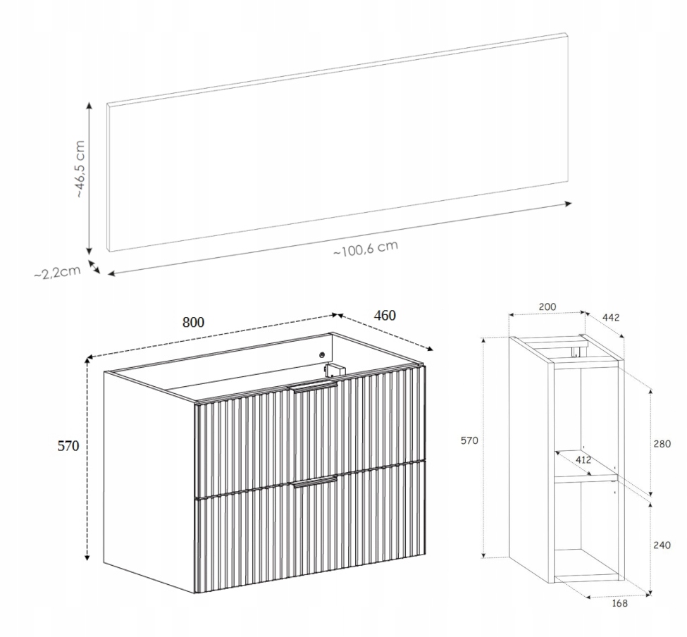 Szafka wyposażona jest w pojemne szuflady z systemem SOFT CLOSE, które zapewniają ciche i płynne domykanie oraz wysoki komfort codziennego użytkowania. Uzupełnieniem zestawu jest praktyczny regał, który można zamontować zarówno po lewej, jak i po prawej stronie, co pozwala elastycznie dopasować układ mebli do przestrzeni łazienki.