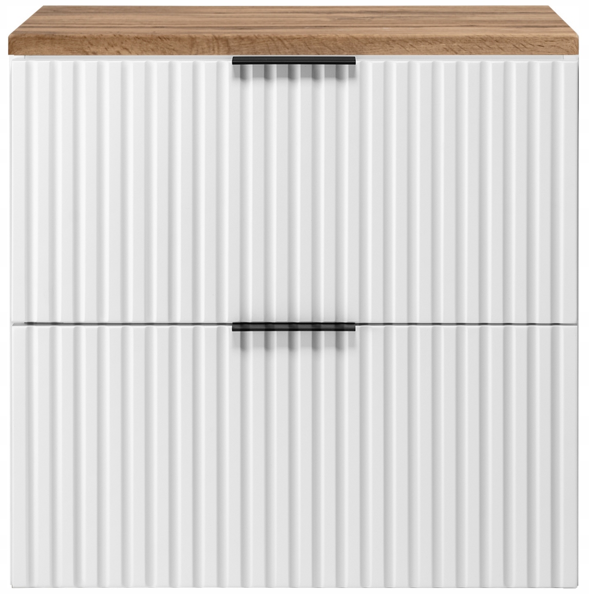 BIAŁA Szafka do Łazienki pod UMYWALKĘ 60 cm z Blatem WOTAN RYFLOWANA
