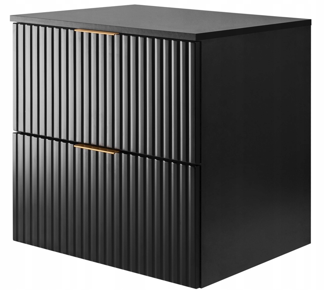 CZARNA WISZĄCA Szafka Łazienkowa pod UMYWALKĘ 60 cm z BLATEM – RYFLOWANA FLOW