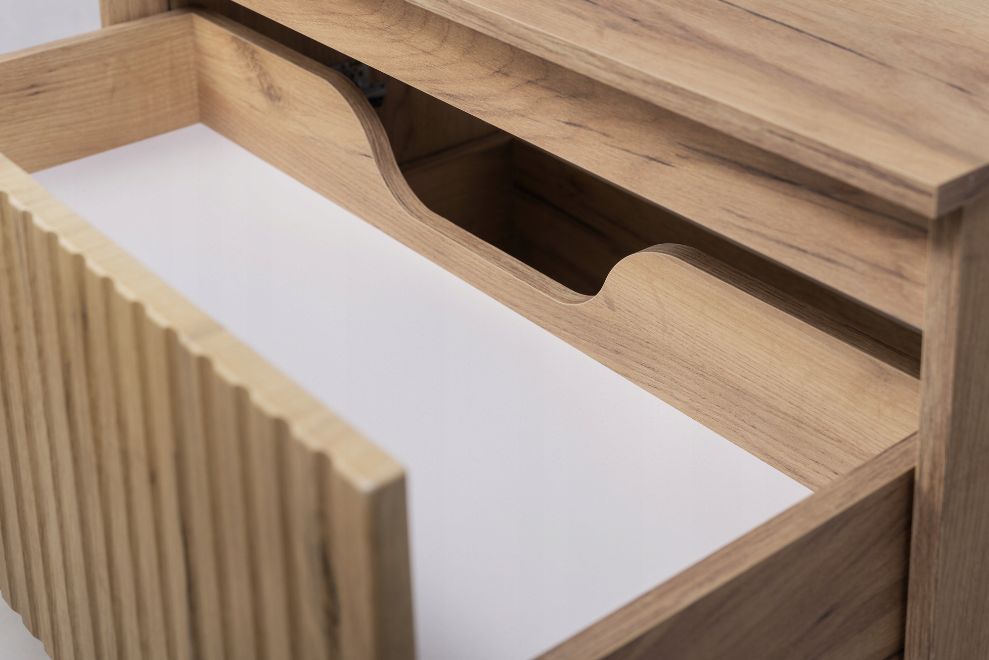 Kolekcja FLOW wyróżnia się charakterystycznymi ryflowanymi frontami, które nadają szafce wyjątkowego wyglądu. Solidna konstrukcja zapewnia trwałość na lata, a starannie dobrane materiały gwarantują odporność na wilgoć i codzienne użytkowanie w łazience.
