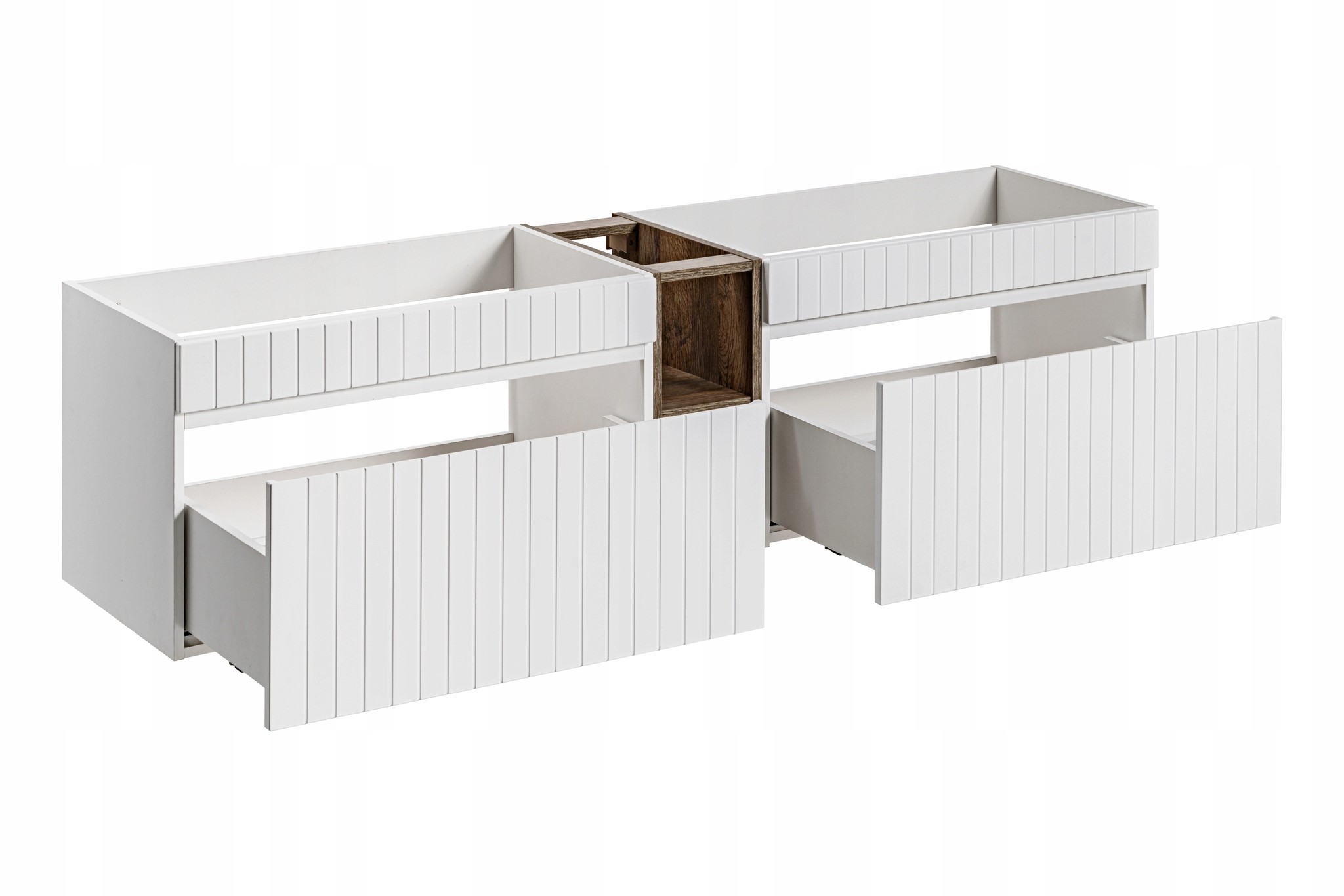 Zanurz się w elegancji z BIAŁĄ Szafką pod Umywalkę o szerokości 180 cm, która łączy funkcjonalność z nowoczesnym stylem. Jej ryflowany front przyciąga wzrok i nadaje wnętrzu łazienki niepowtarzalny charakter. Dwie pojemne szuflady z systemem soft close zapewniają cichą i wygodną obsługę, a ich przestronność pozwala na efektywne przechowywanie niezbędnych akcesoriów.