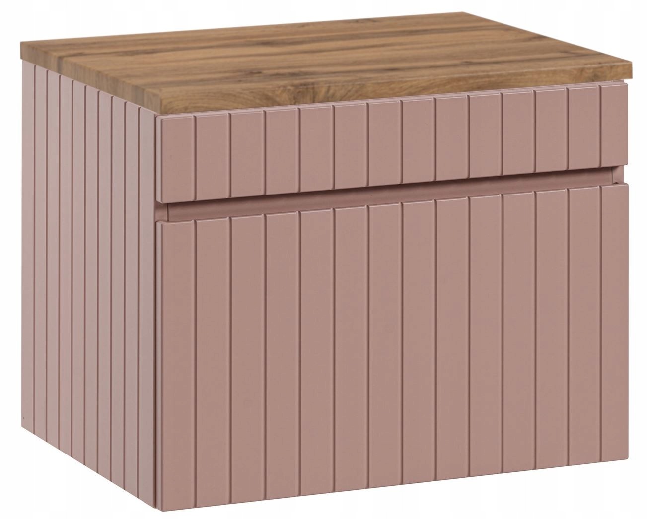 Przedstawiamy FREZOWANĄ Szafkę pod Umywalkę w modnym odcieniu PUDROWEGO RÓŻU, która zachwyca nowoczesnym designem oraz funkcjonalnością. Ta wisząca szafka o szerokości 60 cm wprowadzi do Twojej łazienki wyjątkowy styl i elegancję.