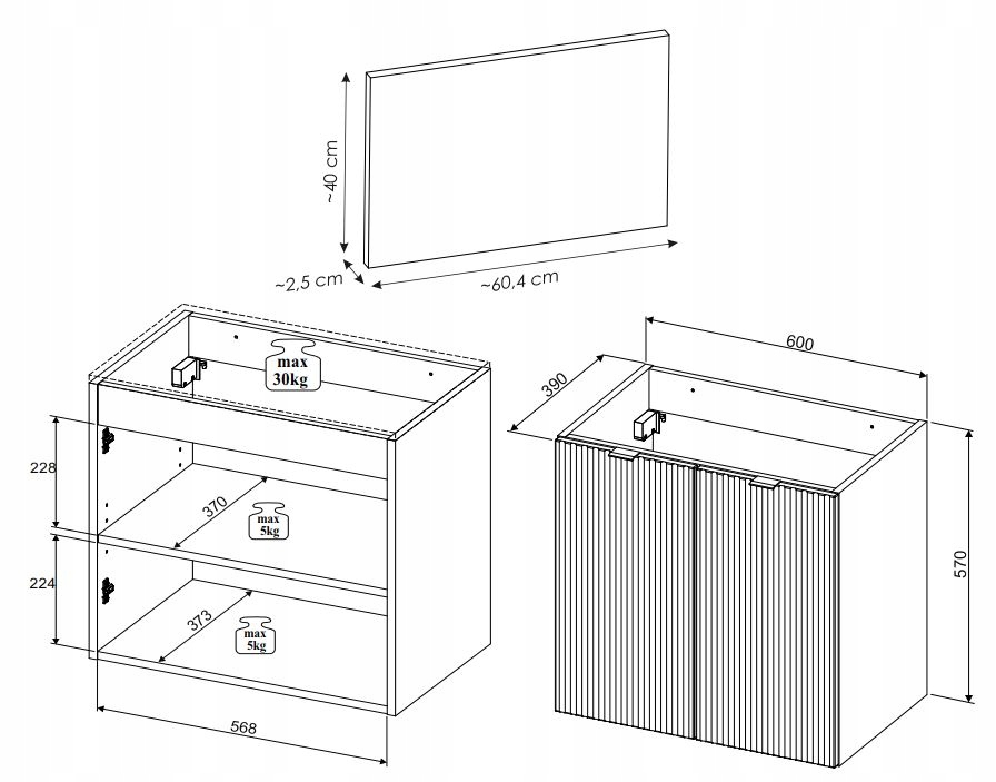 Dzięki dwojgu drzwiom, szafka zapewnia wygodny dostęp do przechowywanych przedmiotów, a metalowe uchwyty dodają nowoczesnego akcentu i są niezwykle trwałe w codziennym użytkowaniu. Praktyczne rozwiązania, takie jak ciche zamykanie drzwi, zwiększają komfort użytkowania, a inteligentny projekt umożliwia optymalne wykorzystanie przestrzeni, czyniąc ją idealną do każdej łazienki.