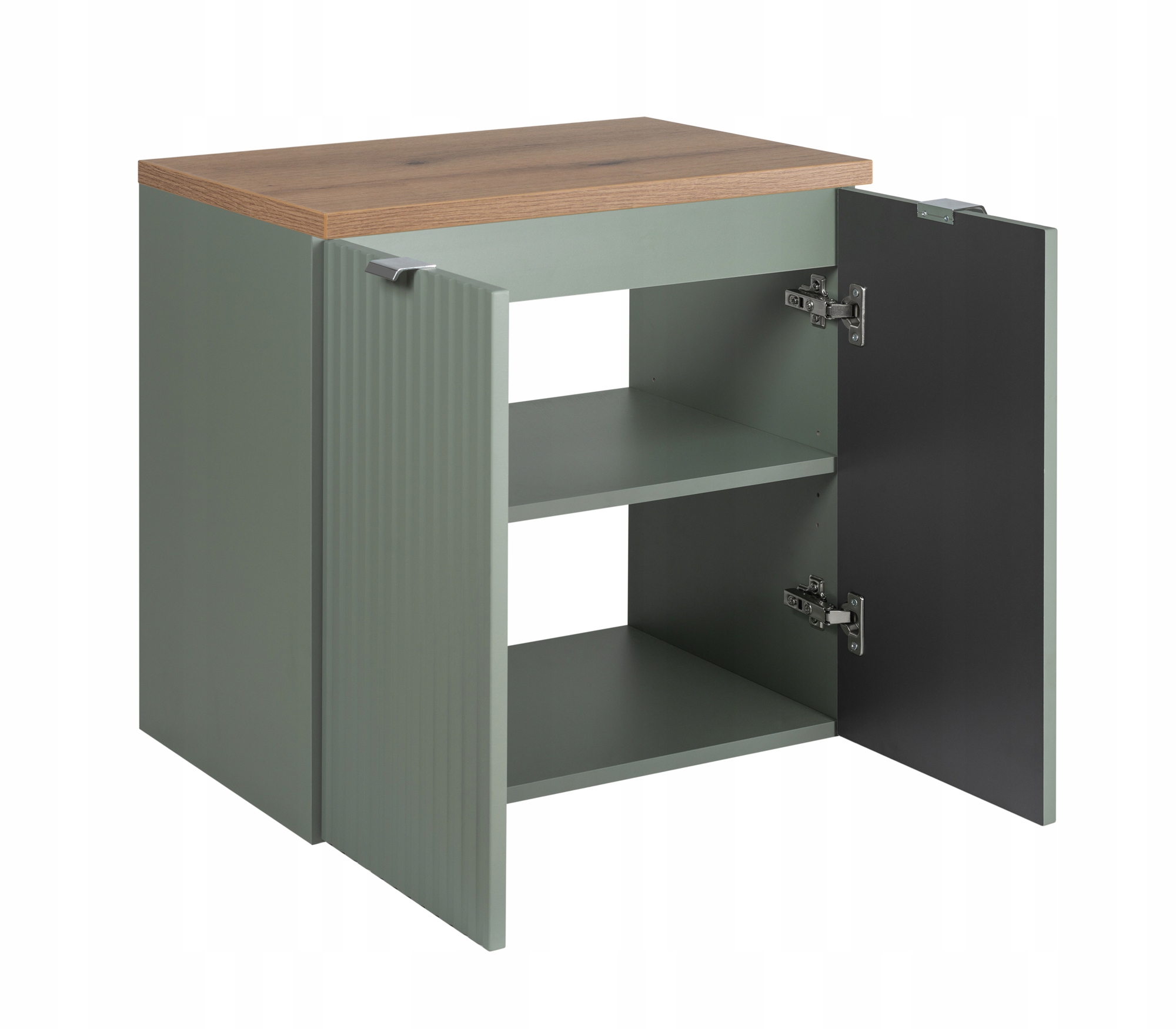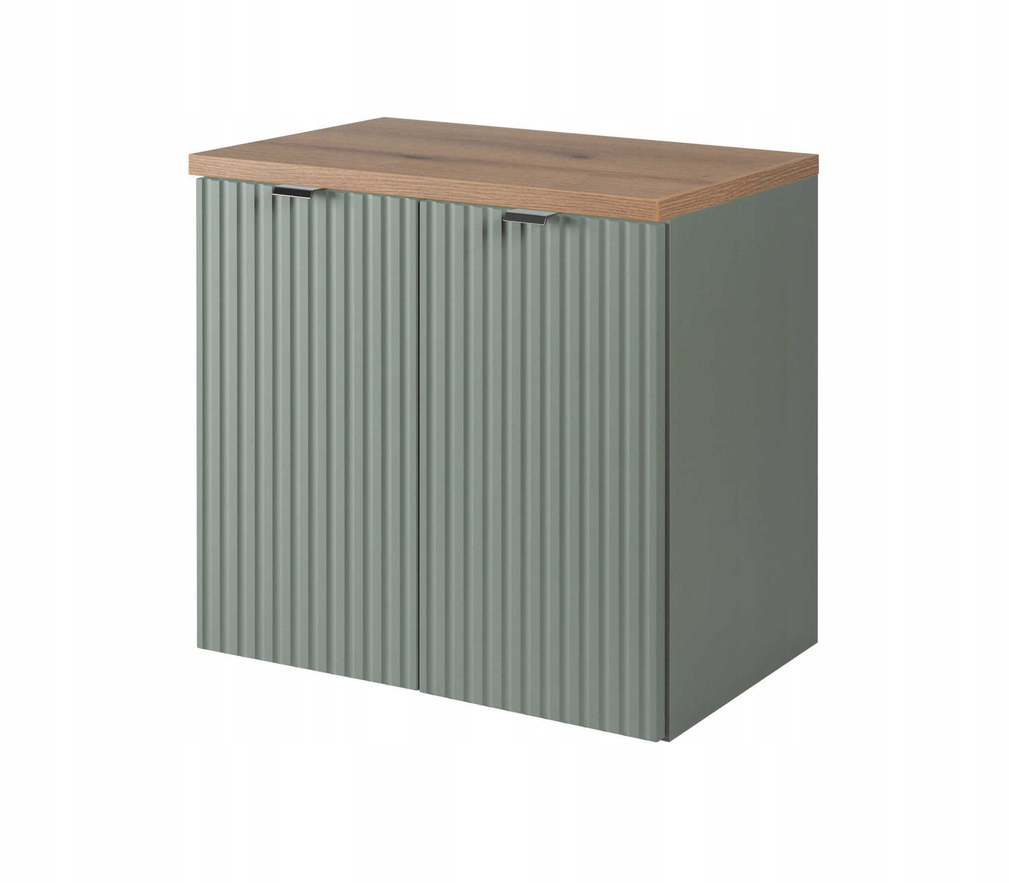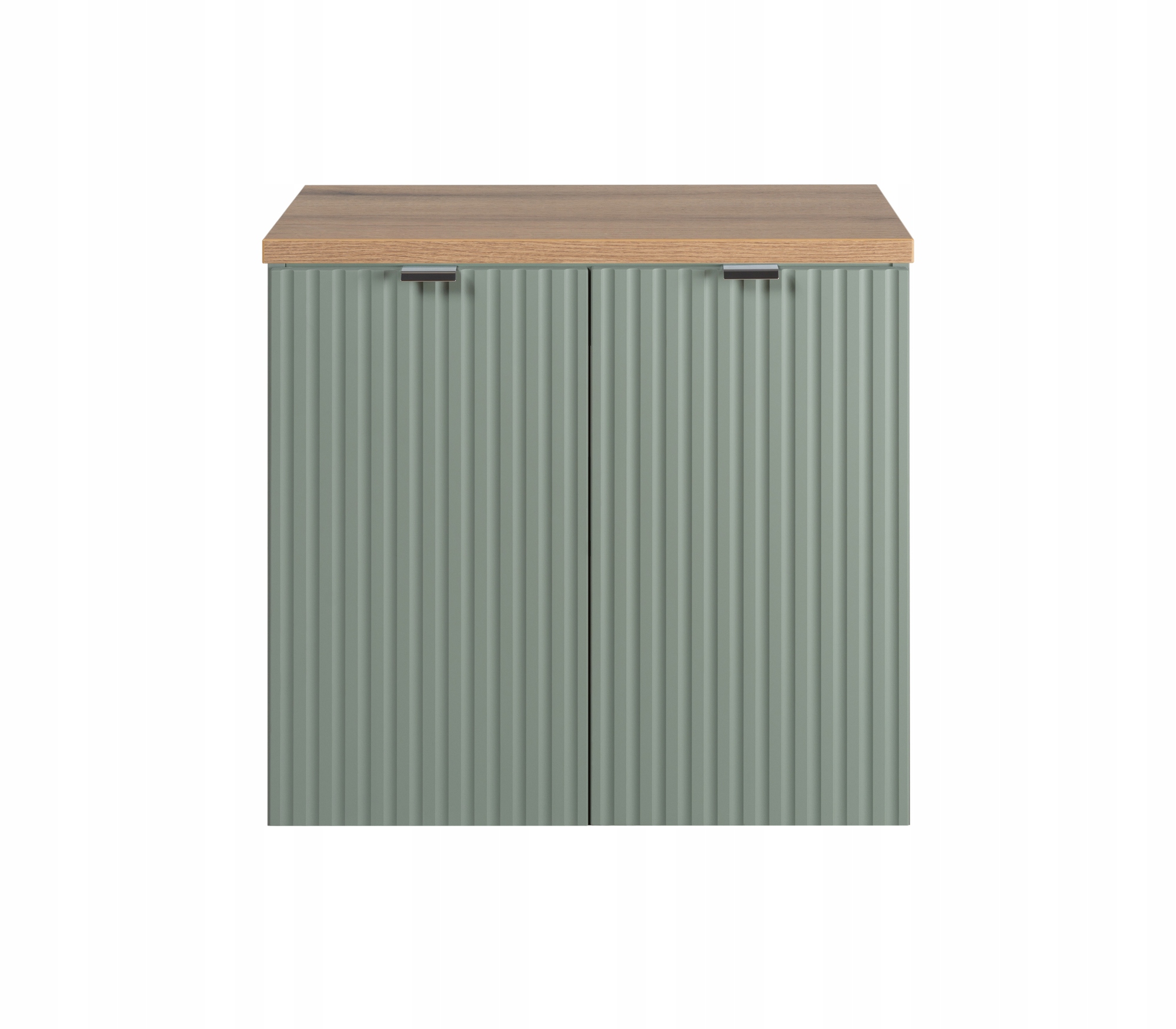 Szafka pod Umywalkę 60 cm – LINE REED GREEN to doskonały wybór dla tych, którzy pragną wprowadzić do swojej łazienki harmonię i styl. Odcień szałwiowy oraz eleganckie ryflowane fronty nadają wnętrzu wyjątkowego charakteru, a dąb ryflowany na blacie wprowadza przytulność i naturalne ciepło.