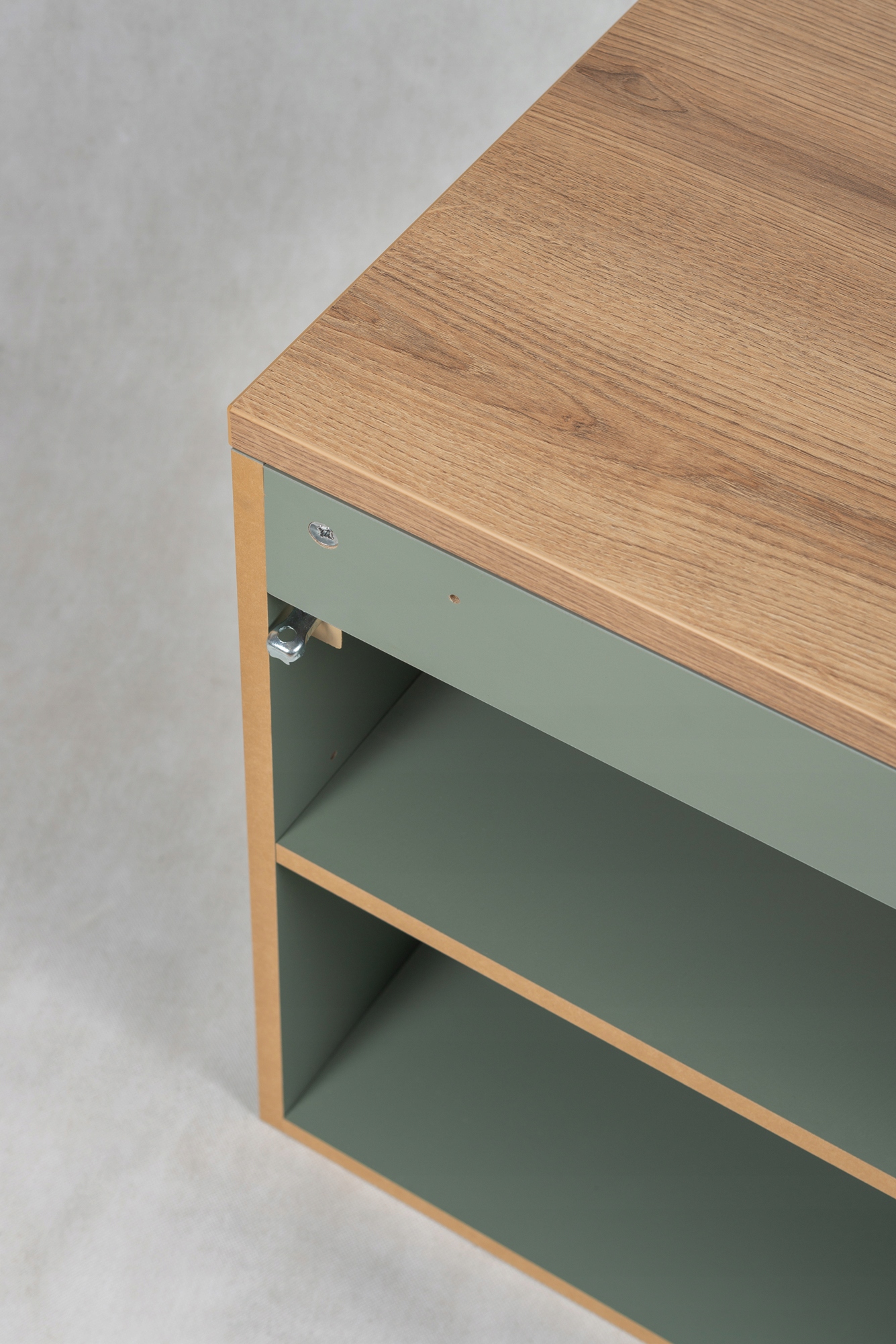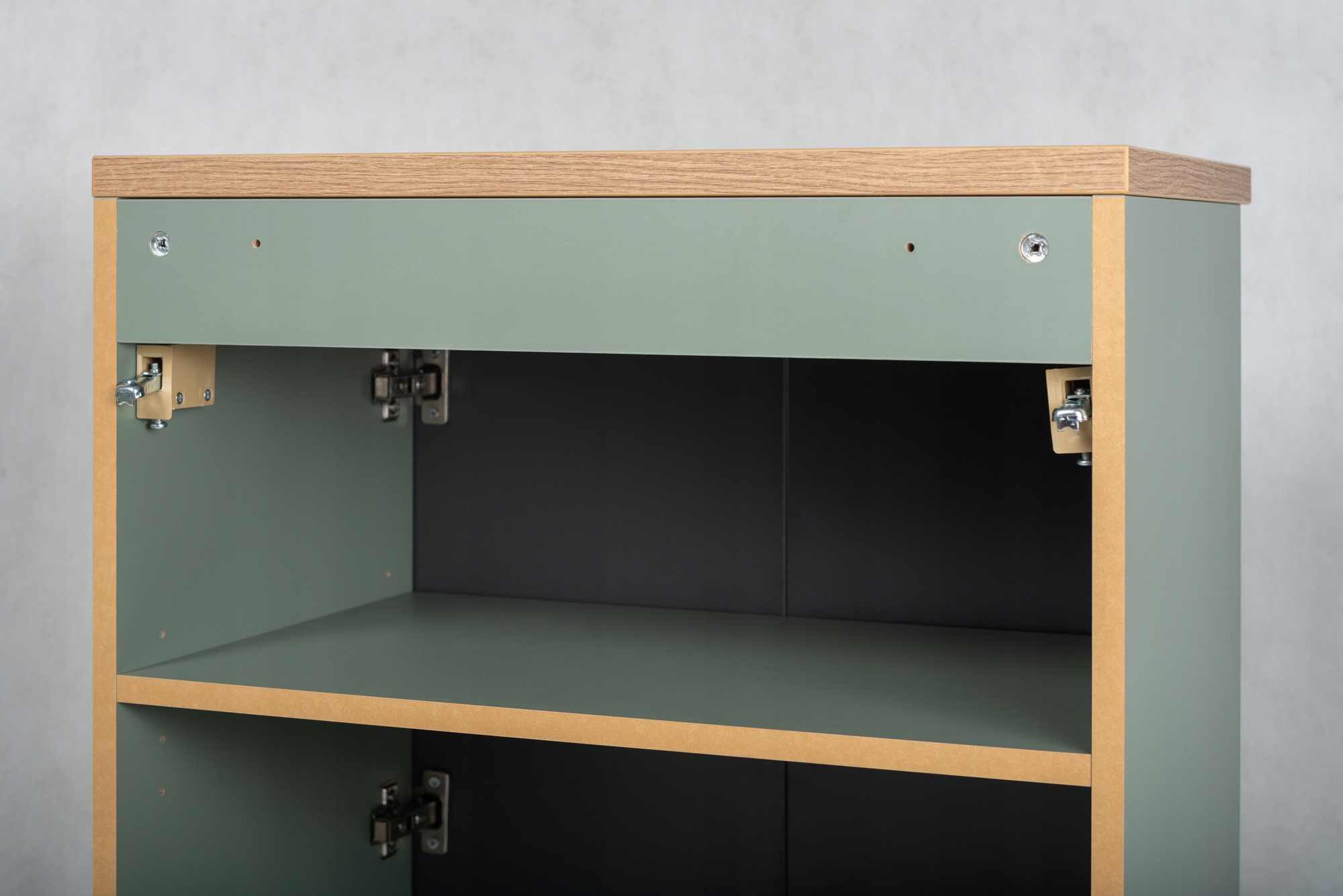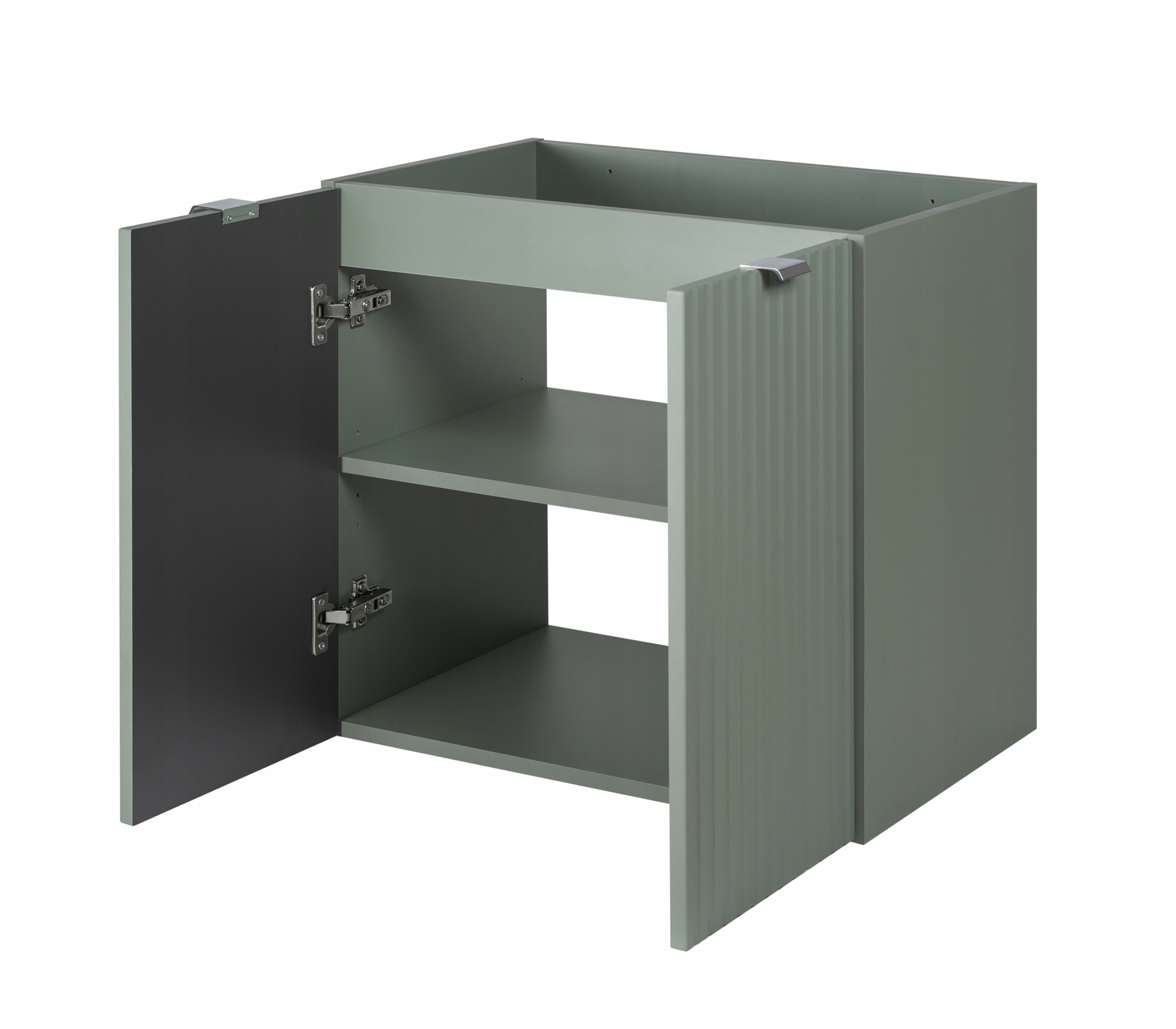Szafka pod Umywalkę 60 cm – LINE REED GREEN to doskonały wybór dla tych, którzy pragną wprowadzić do swojej łazienki harmonię i styl. Odcień szałwiowy oraz eleganckie ryflowane fronty nadają wnętrzu wyjątkowego charakteru, a dąb ryflowany na blacie wprowadza przytulność i naturalne ciepło.