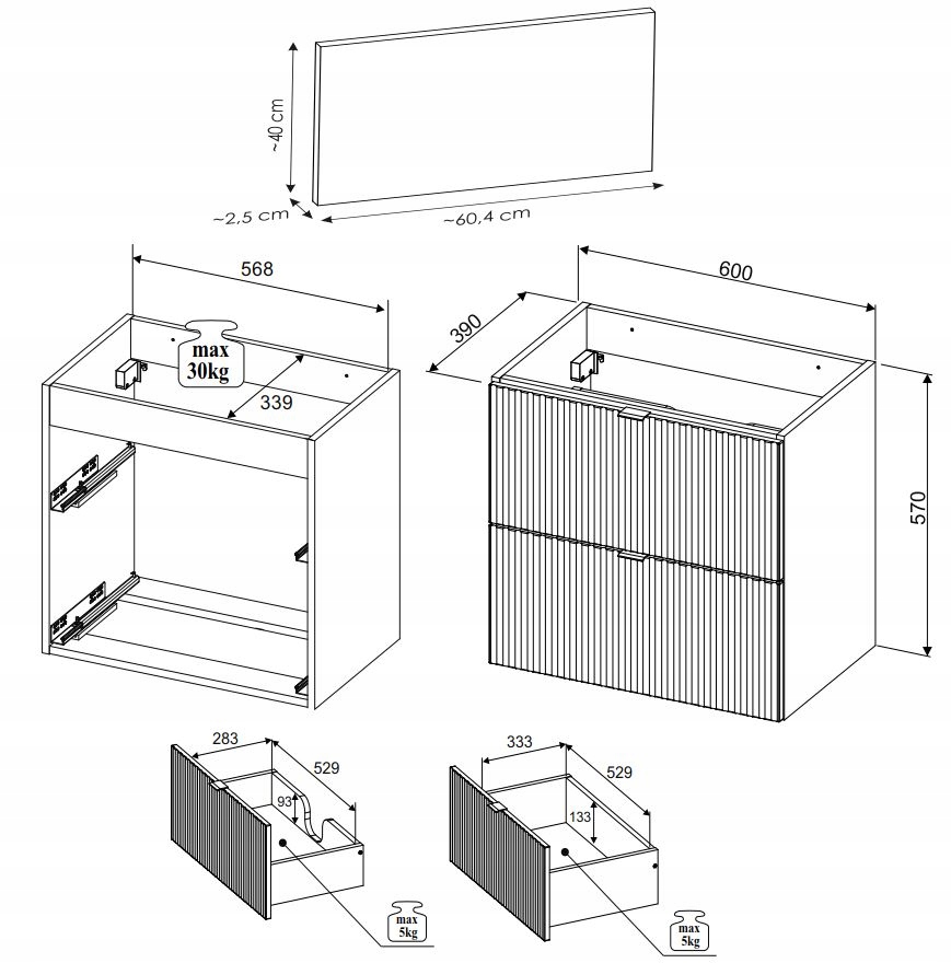 Z dwiema szufladami, szafka zapewnia doskonałą organizację przestrzeni, umożliwiając przechowywanie wszelkich niezbędnych akcesoriów łazienkowych. Dzięki systemowi cichego domyku korzystanie z szuflad jest komfortowe, a subtelne ryflowania dodają elegancji. Kolekcja LINE REED GREEN to więcej niż tylko meble – to manifestacja stylu życia, który łączy harmonię i estetykę w codziennym użytkowaniu. Przekształć swoją łazienkę w oazę spokoju i relaksu z tym wyjątkowym zestawem!