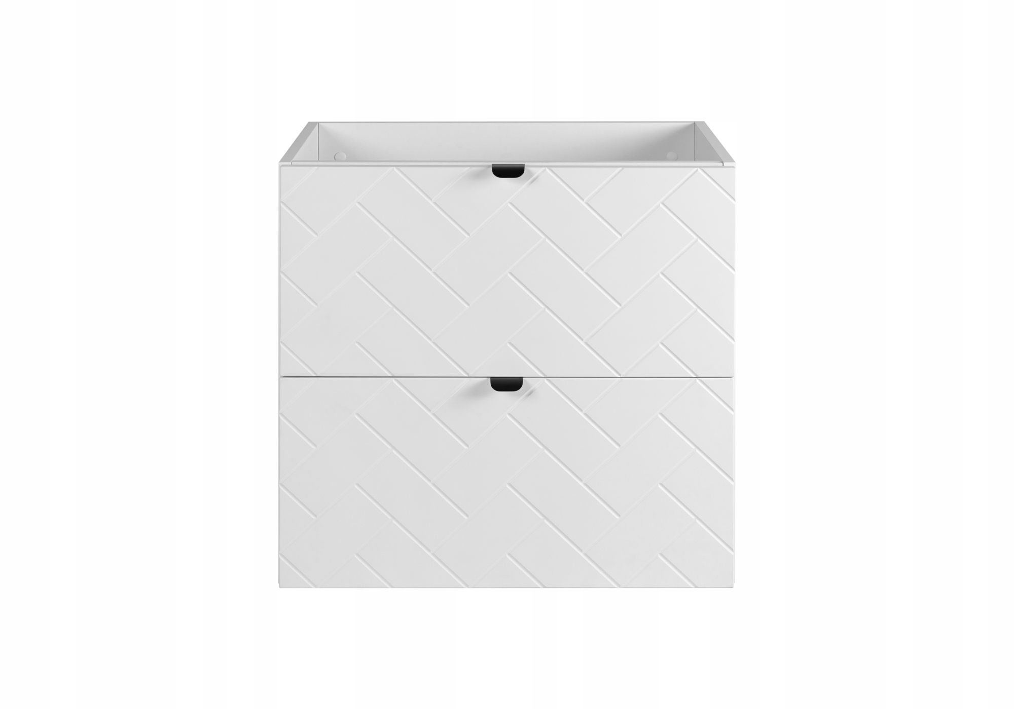 BIAŁA Szafka pod Umywalkę 60 cm to stylowy element wyposażenia każdej nowoczesnej łazienki. Część kolekcji MADIS, charakteryzuje się eleganckim wzorem jodełki, który wprowadza do wnętrza niepowtarzalny urok.