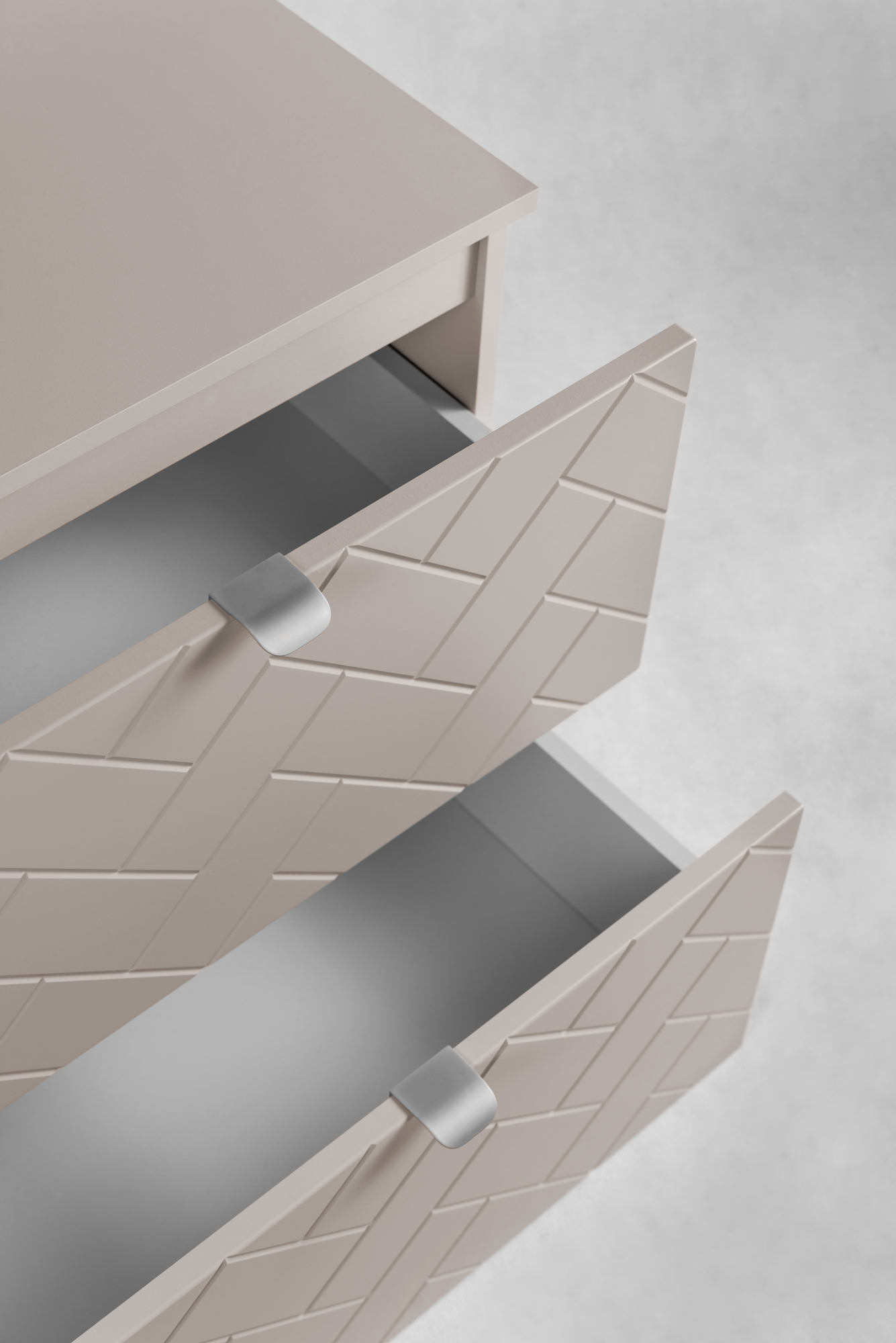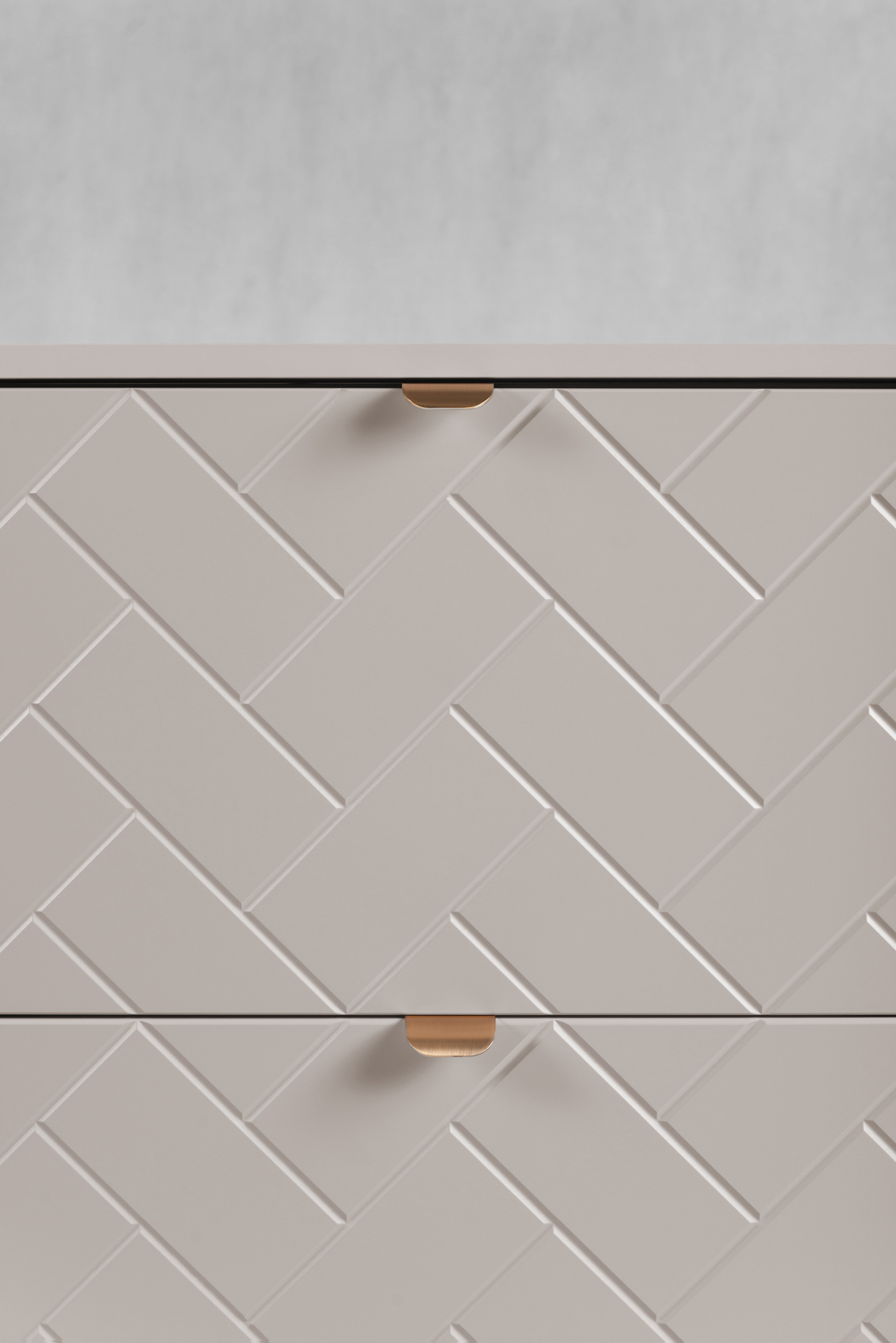 Dzięki 2 pojemnym szufladom z mechanizmem cichego domyku, korzystanie z szafki jest komfortowe i bezpieczne. Metalowe uchwyty w trzech kolorach — złotym, czarnym i srebrnym — umożliwiają łatwe dopasowanie mebli do różnych aranżacji.