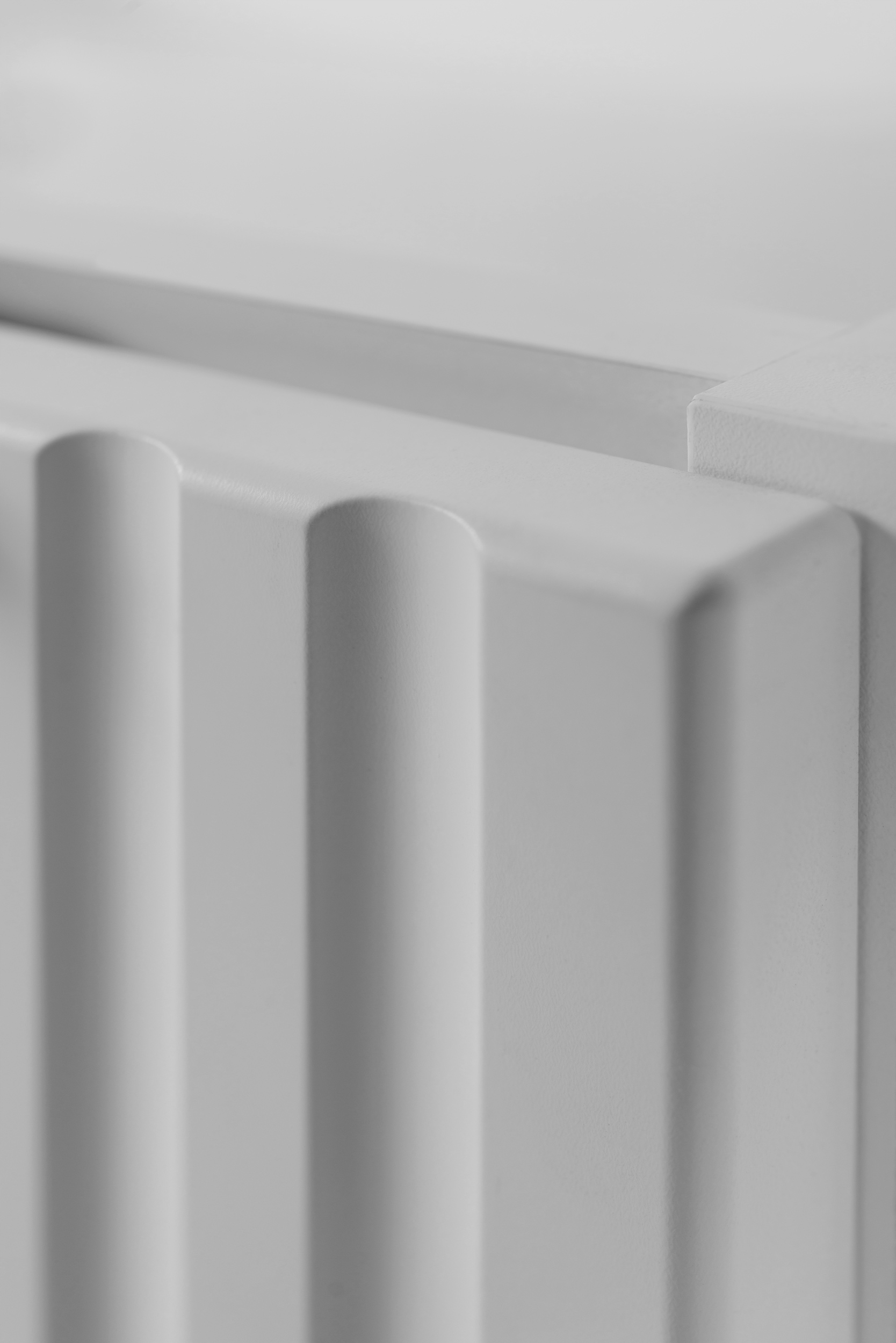 Połączenie białych ryflowanych frontów z czarnymi regałami i blatem tworzy nowoczesną, spójną kompozycję, która świetnie odnajdzie się w minimalistycznych oraz loftowych aranżacjach łazienkowych. Wysoka jakość wykonania zapewnia trwałość i odporność na wilgoć, a trzy kolory uchwytów w zestawie pozwalają na pełną personalizację wyglądu mebla.