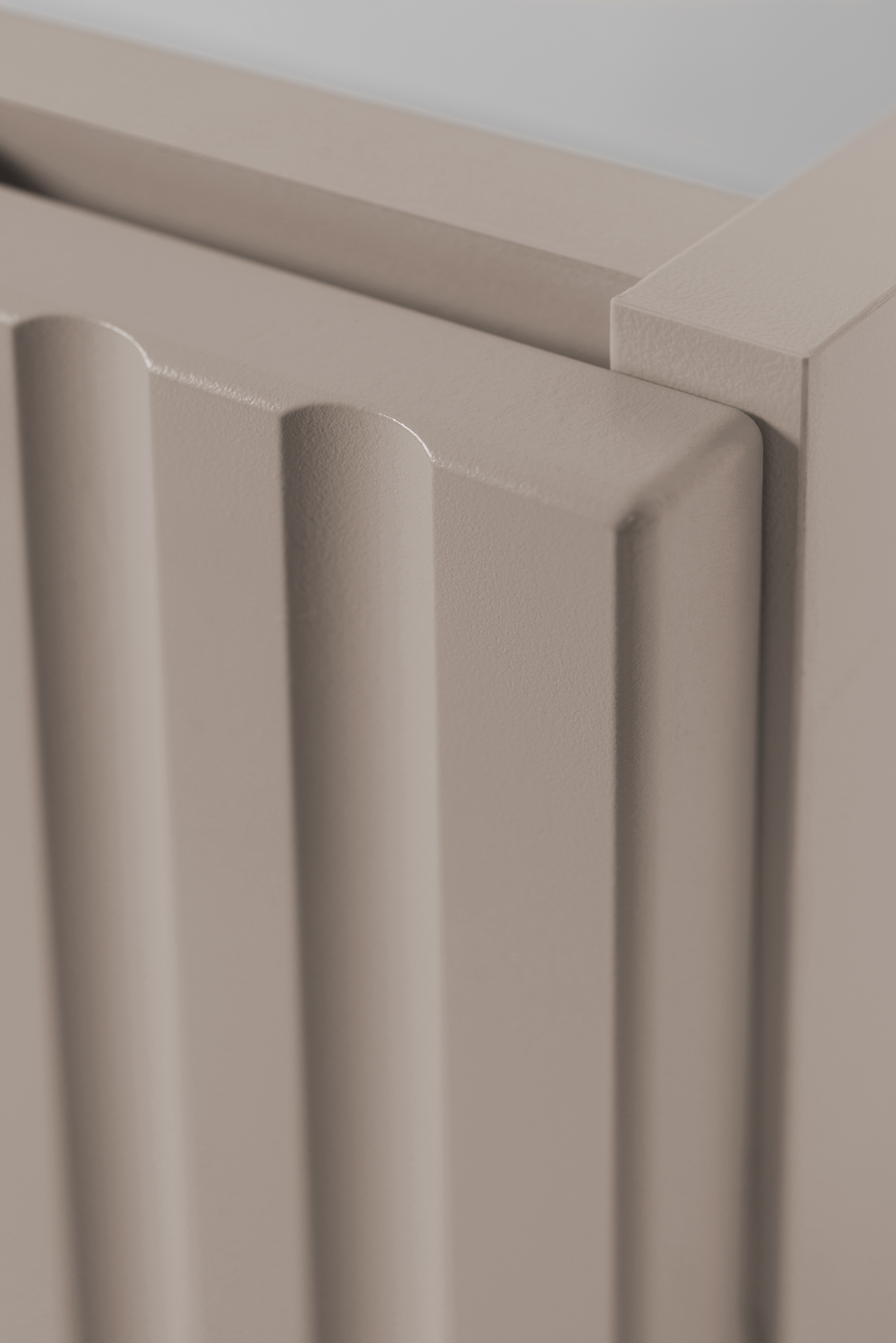 Zestaw mebli FLOW to doskonałe rozwiązanie do nowoczesnej łazienki, w którym funkcjonalność spotyka się z eleganckim designem. Centralnym elementem zestawu jest szafka pod umywalkę w kolorze kaszmir, wyposażona w dwoje drzwi z dekoracyjnymi, ryflowanymi frontami, które nadają całości stylowego i wyrafinowanego charakteru. Przemyślane wnętrze szafki zapewnia praktyczną przestrzeń do przechowywania niezbędnych akcesoriów łazienkowych.