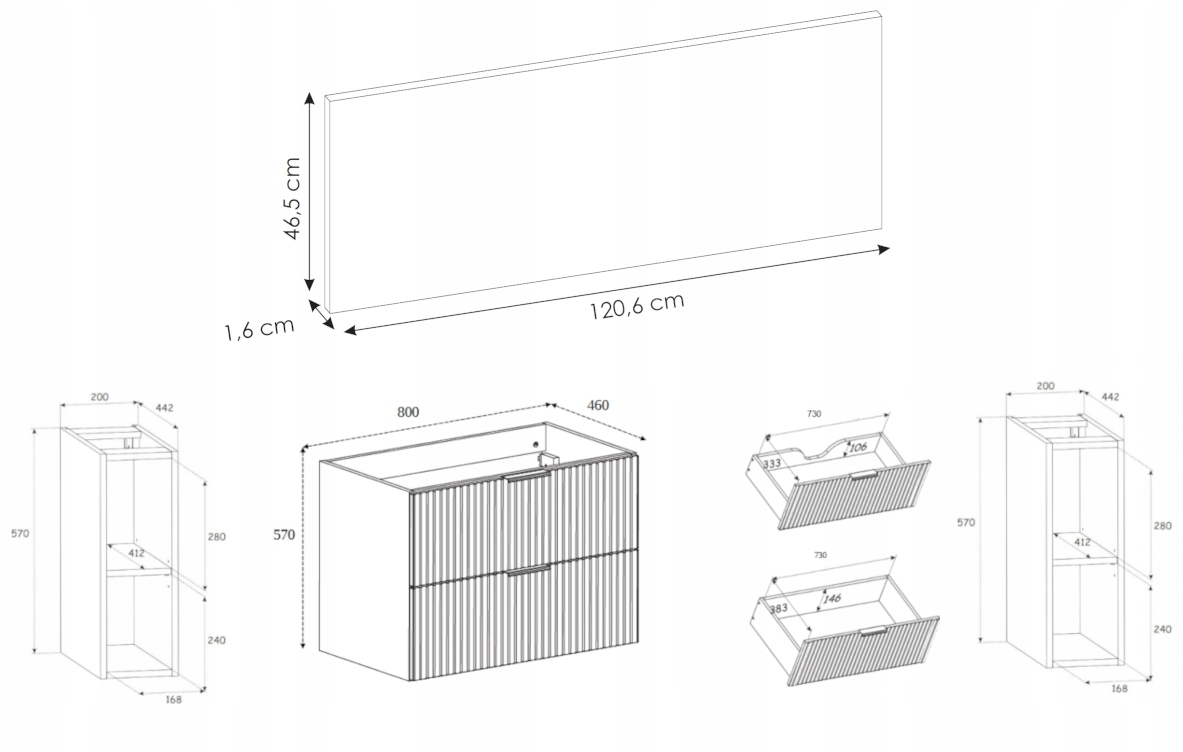 Ten elegancki zestaw łazienkowy z kolekcji FLOW w odcieniu kaszmiru idealnie wkomponuje się w nowoczesne wnętrza. Zawiera wiszącą szafkę pod umywalkę o szerokości 80 cm, wyposażoną w ryflowane fronty i dwie pojemne szuflady z cichym domykiem SOFT CLOSE dla komfortowego użytkowania. Blat o szerokości 120 cm w kaszmirowym wykończeniu dodaje elegancji i spójności całemu zestawowi.
