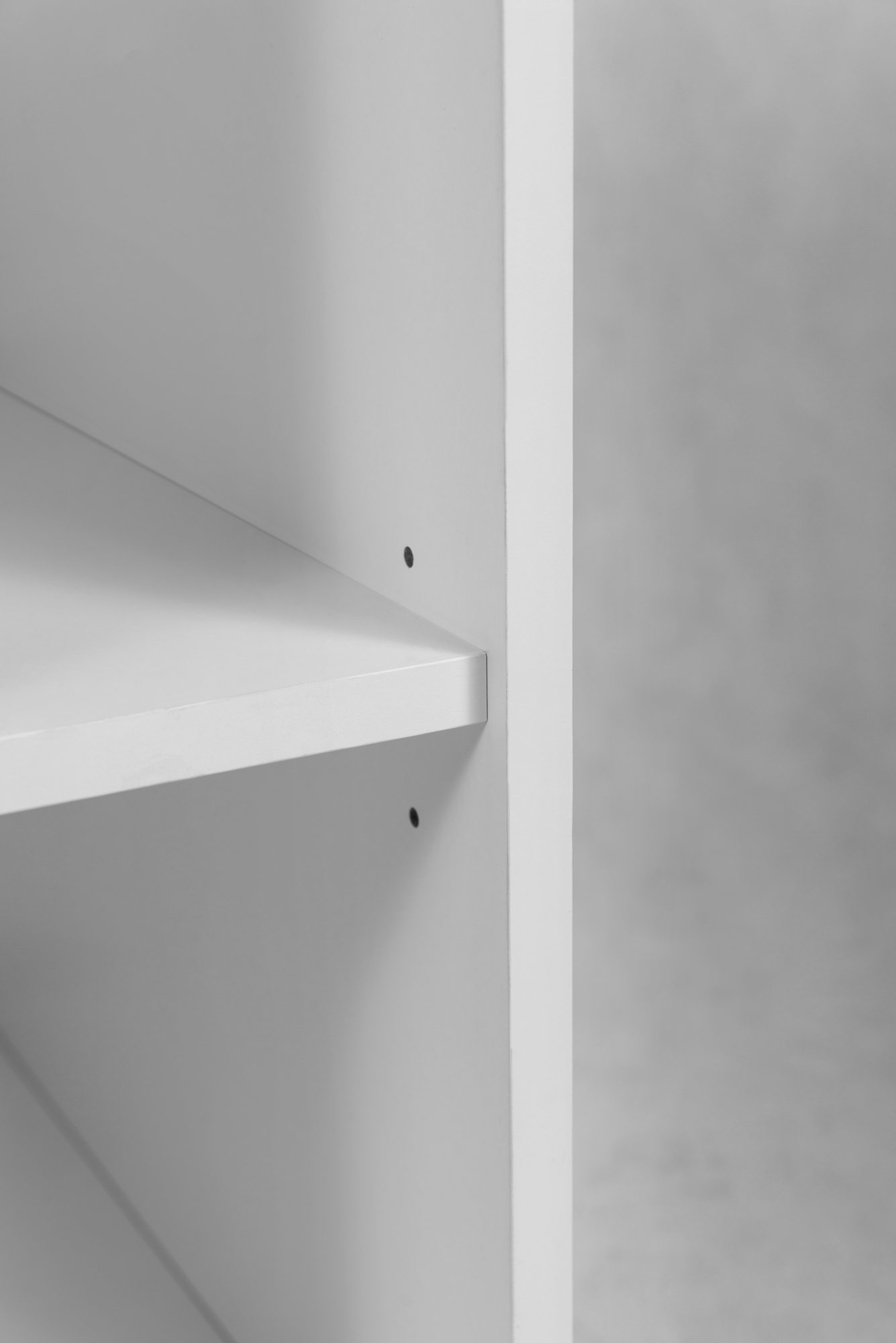 Uzupełnieniem zestawu są dwa regały w białym macie, oferujące dodatkową przestrzeń do przechowywania i możliwość dowolnego rozmieszczenia w zależności od potrzeb aranżacyjnych. System cichego domyku SOFT CLOSE zapewnia płynne i bezgłośne użytkowanie szuflad, podnosząc komfort na co dzień.
