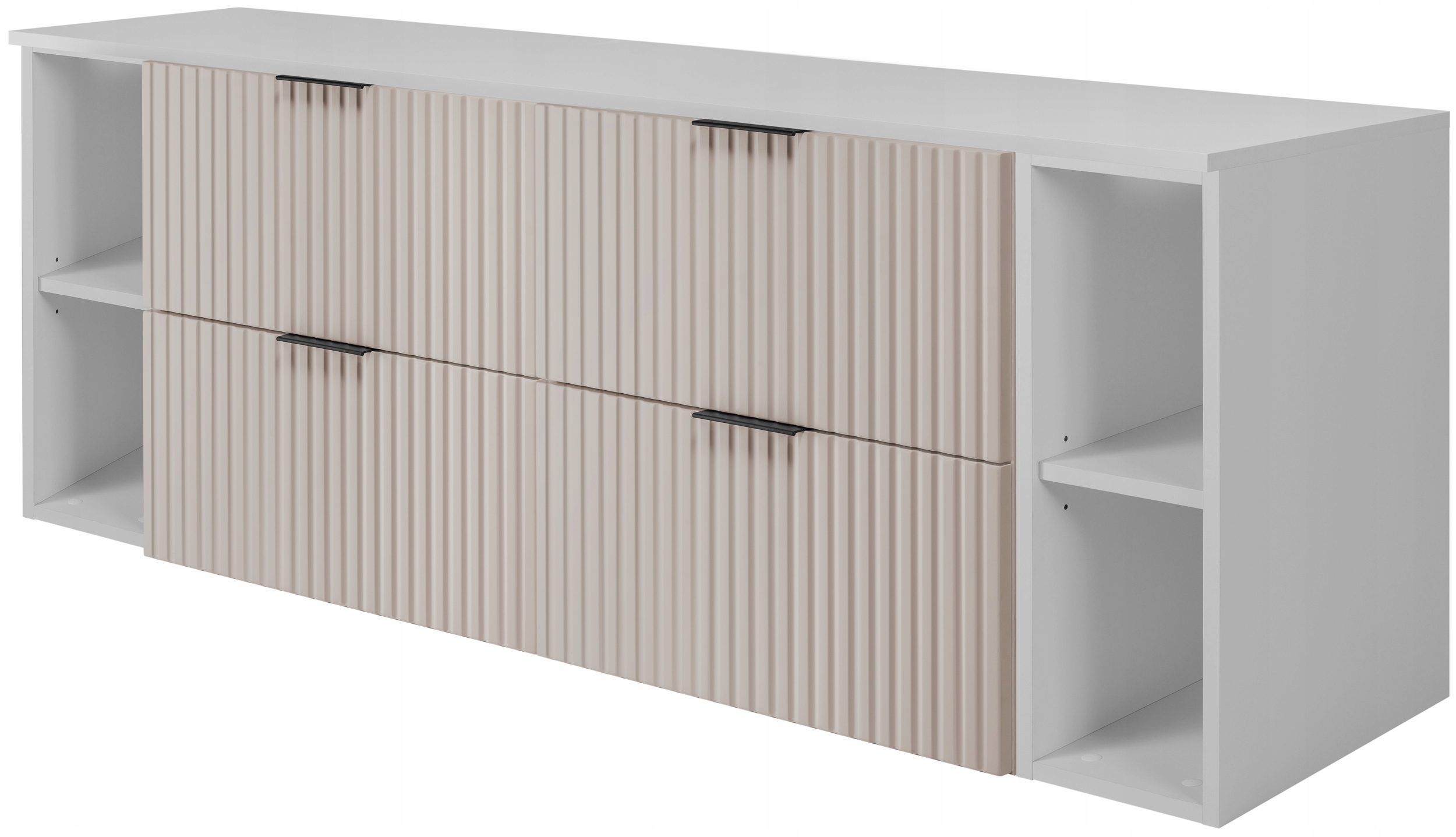 Zestaw kaszmirowych mebli łazienkowych FLOW 160 cm z białymi regałami – wiszący
