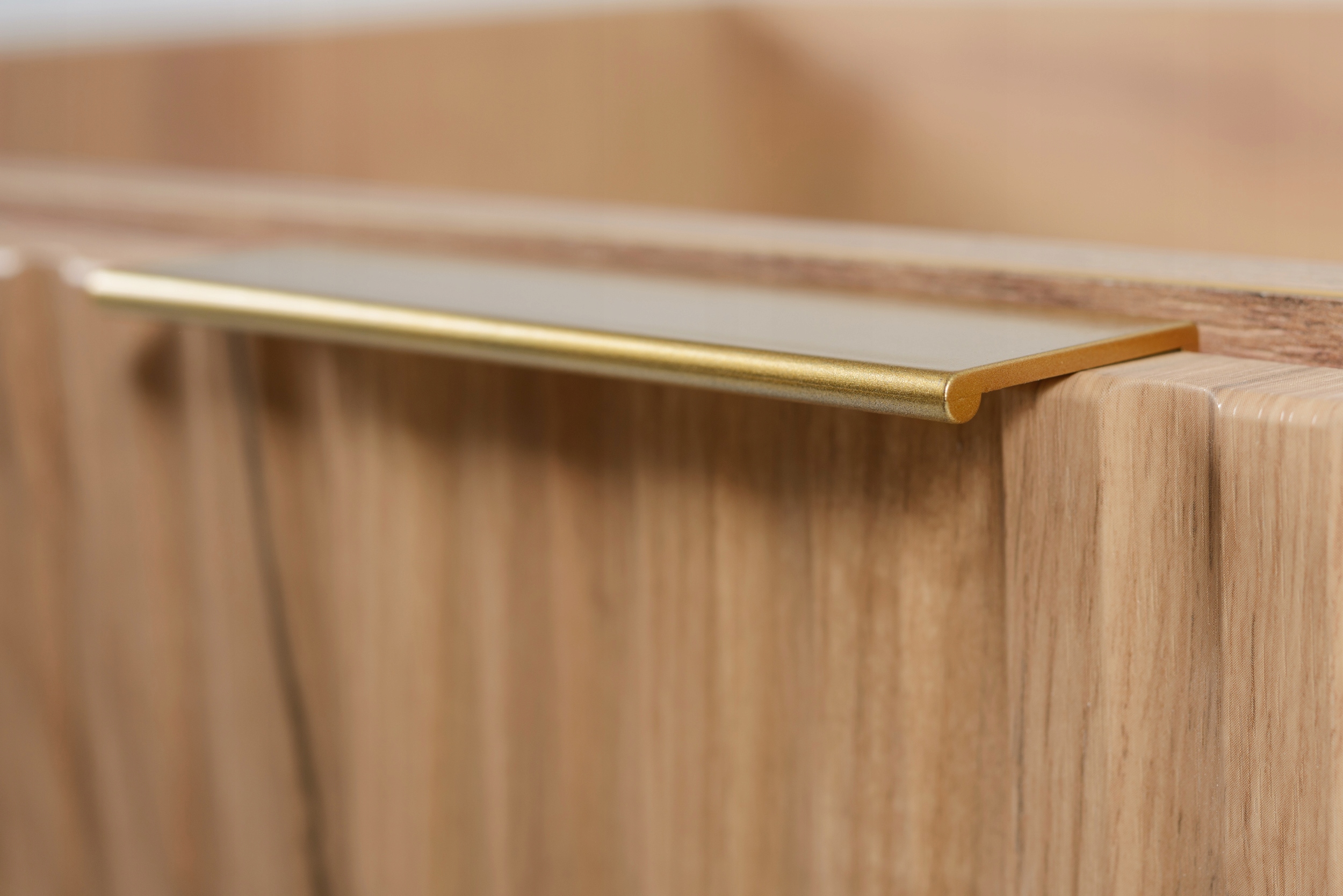 Całość została zaprojektowana tak, aby zapewnić maksymalną funkcjonalność przy zachowaniu minimalistycznej elegancji. Połączenie naturalnego dekoru drewna z czarnymi elementami nadaje wnętrzu nowoczesny i ponadczasowy charakter. Wysoka jakość wykonania gwarantuje trwałość i odporność na wilgoć. W zestawie znajdują się trzy kolory uchwytów: czarny, srebrny i złoty.