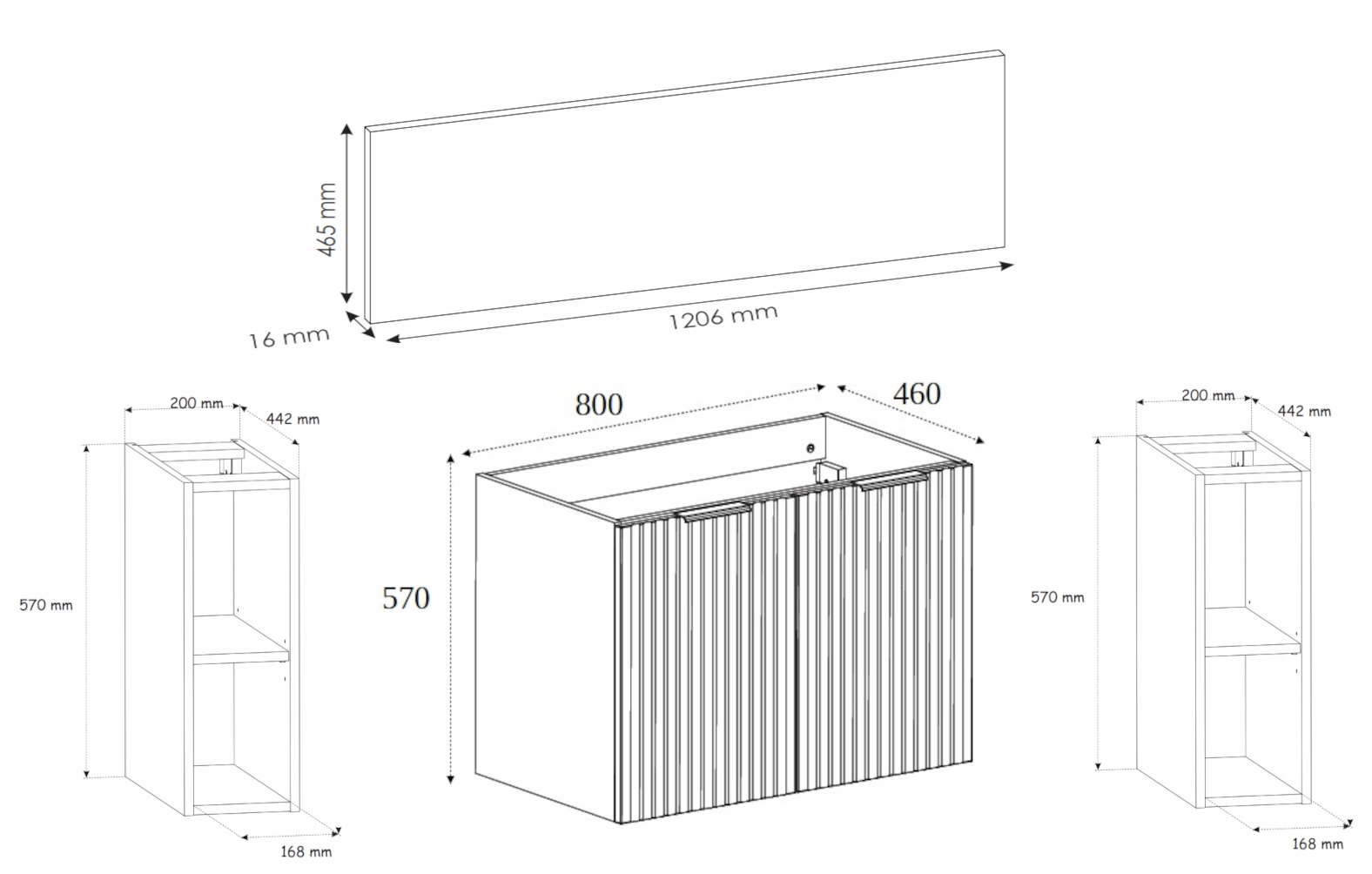 Możliwość rozbudowy każdej kolekcji o dodatkowe elementy takie jak metalowe nóżki, słupki, szafki wiszące oraz syfony i umywalki.