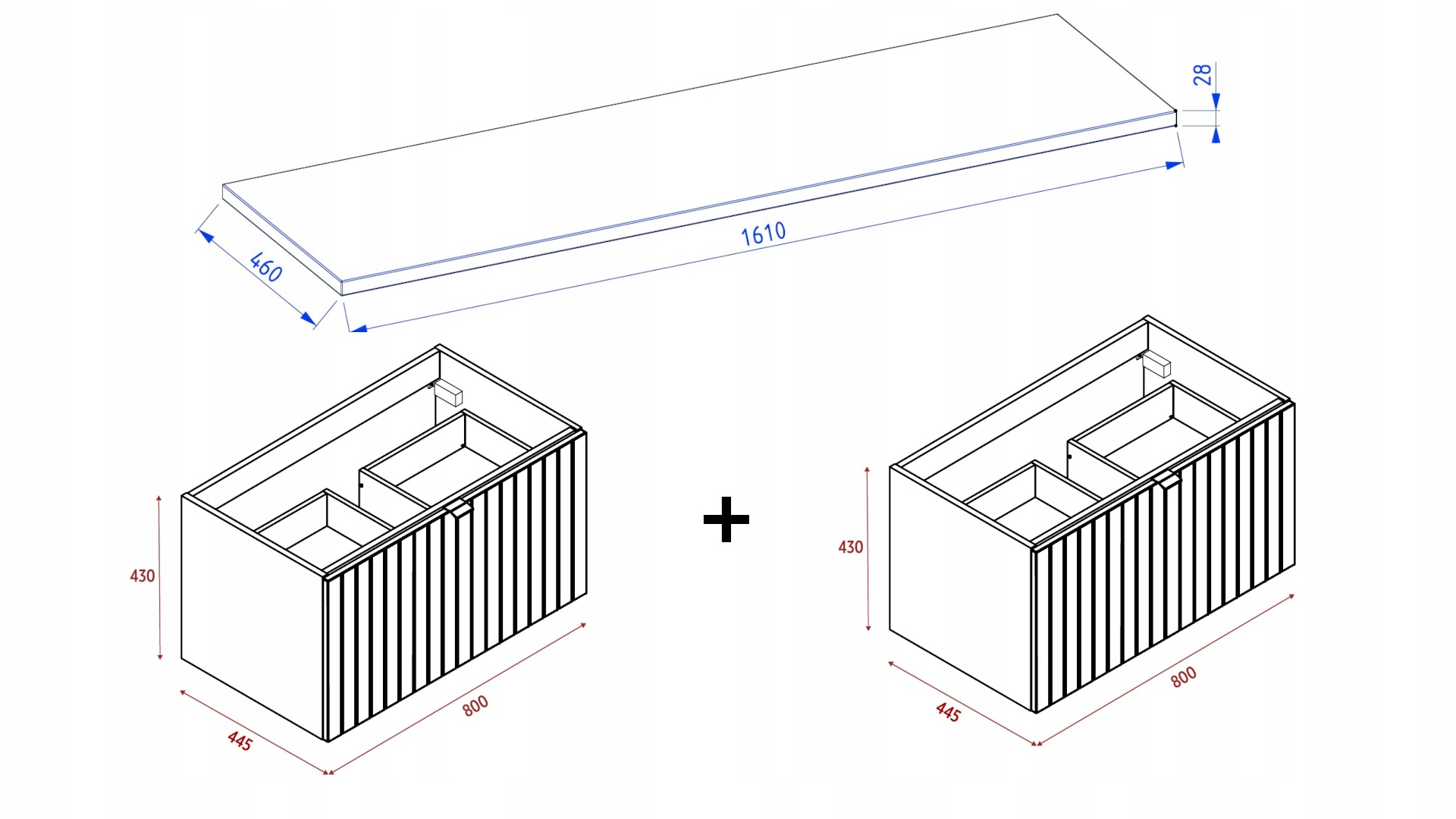 Szafka o imponującej szerokości 161 cm powstała z dwóch modułów o szerokości 80 cm każdy. Wnętrze skrywa pojemne szuflady zewnętrzne oraz praktyczne szufladki wewnętrzne, które doskonale sprawdzają się do przechowywania kosmetyków i akcesoriów. Prowadnice Hettich Quadro z funkcją cichego domyku gwarantują komfortowe i płynne użytkowanie każdego dnia. Blat z litego dębu klejonki w naturalnym wykończeniu wprowadza do wnętrza przytulny charakter i stanowi eleganckie uzupełnienie całości.