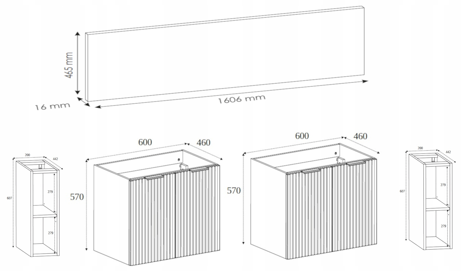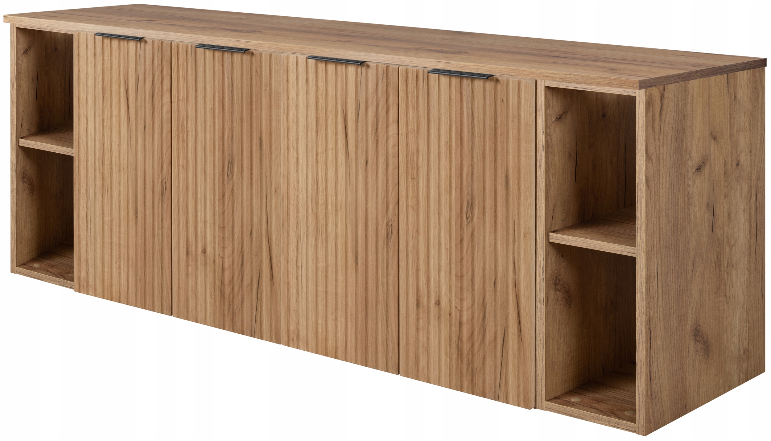 Nowoczesny design glamour w połączeniu z charakterystycznymi ryflowanymi frontami tworzy wyjątkowy efekt wizualny, który odmieni każdą łazienkę. Meble są wiszące, co nadaje im lekkości oraz ułatwia utrzymanie czystości na co dzień. Zawiasy i prowadnice z systemem SOFT CLOSE gwarantują ciche i komfortowe użytkowanie, a możliwość dowolnego rozmieszczenia regałów pozwala dostosować układ do indywidualnych potrzeb.