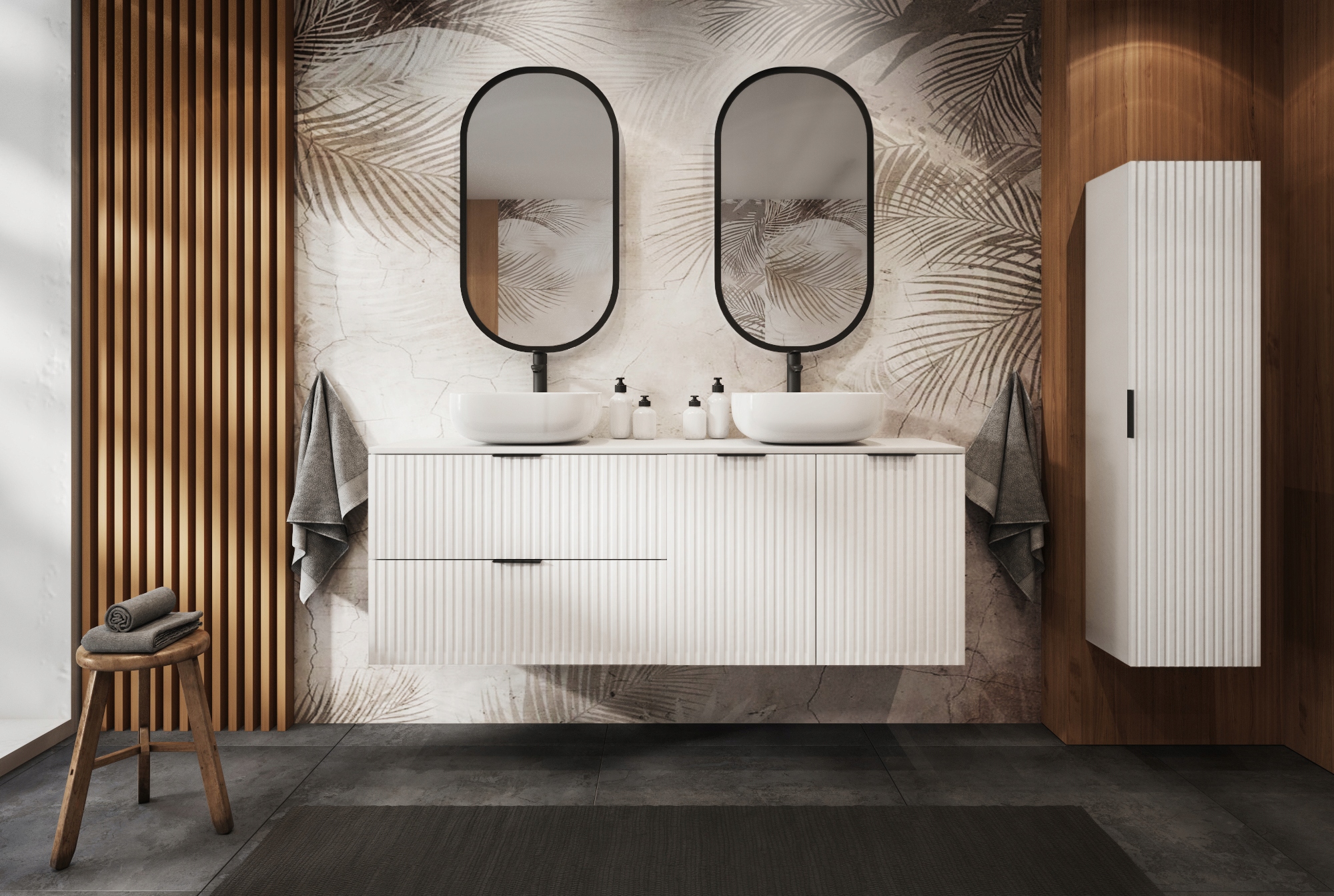 FLOW to nowoczesna kolekcja mebli łazienkowych zaprojektowana z myślą o funkcjonalności oraz możliwości tworzenia różnych konfiguracji zabudowy. Charakterystyczne ryflowane fronty wykonane z płyty MDF nadają meblom elegancki wygląd i sprawiają, że kolekcja dobrze pasuje zarówno do nowoczesnych, jak i bardziej klasycznych aranżacji łazienek. Jasna biała kolorystyka podkreśla minimalistyczny charakter bryły i pozwala tworzyć lekkie, spójne kompozycje z innymi elementami kolekcji FLOW.