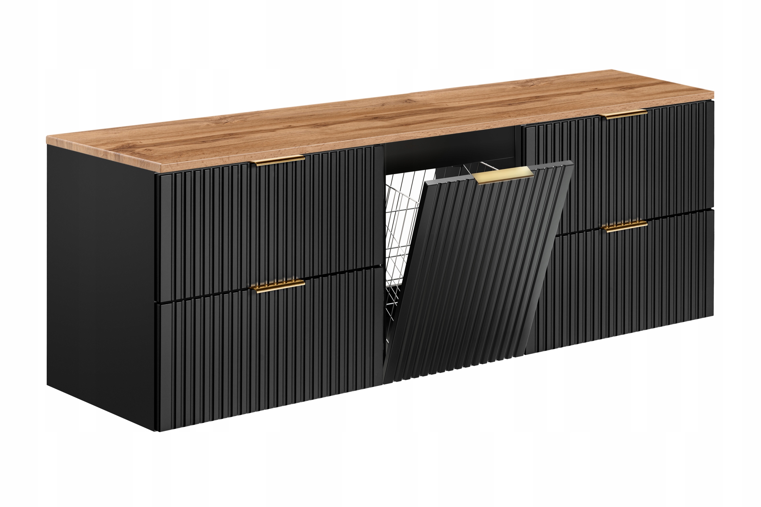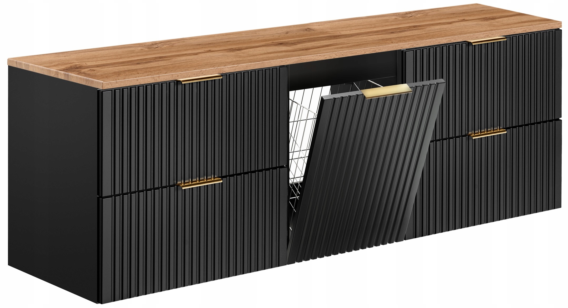 Szafka Łazienkowa Adel Black 160 cm z Koszem i Blatem Wotan