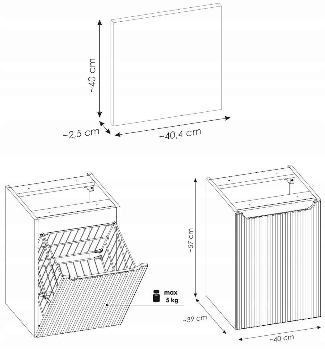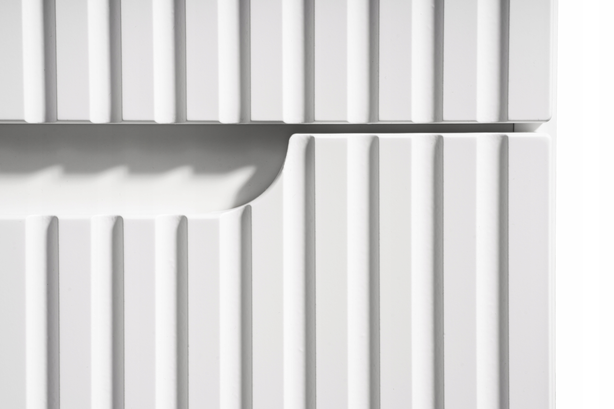 Kolekcja Nova White to minimalistyczna linia mebli łazienkowych, która wyróżnia się prostą formą, eleganckim wykończeniem i praktycznymi detalami. Biała szafka z ryflowanym frontem i frezowanym uchwytem zachwyca lekkością wizualną i ponadczasowym wyglądem, idealnym zarówno do klasycznych, jak i nowoczesnych łazienek. Model o szerokości 40 cm skrywa praktyczny kosz na pranie, który ułatwia codzienną organizację bez rezygnowania z estetyki. Zestaw uzupełnia kontrastujący czarny blat, który nadaje całej bryle wyrazistości i eleganckiego charakteru. Dzięki mniejszej głębokości, mebel świetnie sprawdzi się także w niewielkich przestrzeniach. Seria Nova White została zaprojektowana z myślą o użytkownikach poszukujących trwałych rozwiązań – korpus wykonano z płyty laminowanej, fronty z lakierowanego MDF, a blat z solidnego MDF o grubości 25 mm. Meble dostępne są w różnych wariantach kolorystycznych: biały, kaszmir, czarny, zielony, z możliwością dobrania blatu w kolorze białym, kaszmiru, czerni lub dębu. Kolekcja Nova łączy w sobie wygodę użytkowania, przemyślaną formę i uniwersalny styl – to funkcjonalne rozwiązanie, które podkreśli indywidualny charakter każdej łazienki.