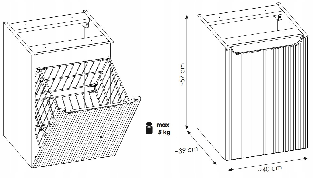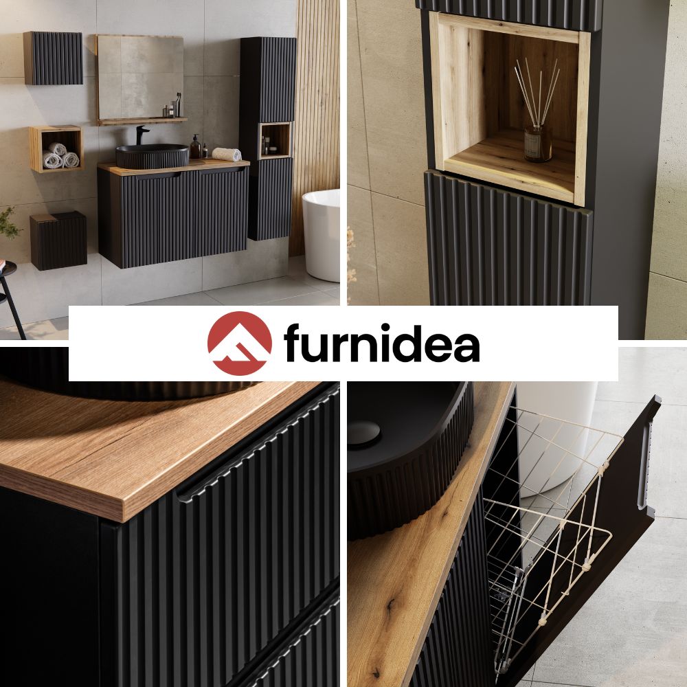 Szafka z kolekcji Nova Black o szerokości czterdziestu centymetrów to praktyczny, a zarazem elegancki mebel do nowoczesnej łazienki. Wykonana z płyty laminowanej i MDF w matowym czarnym wykończeniu, prezentuje ponadczasowy, minimalistyczny design z charakterystycznymi, pionowymi ryflowaniami na froncie. Frezowany uchwyt dyskretnie wpisuje się w bryłę mebla, a front skrywa funkcjonalny kosz na pranie – praktyczne rozwiązanie, które łączy wygodę z estetyką. Blat w kolorze czarny mat dopełnia całości, tworząc spójny, nowoczesny zestaw. Szafka ma kompaktowe wymiary i mniejszą głębokość, co czyni ją idealnym wyborem do niewielkich przestrzeni. Dzięki formie wiszącej mebel prezentuje się lekko, a jednocześnie ułatwia sprzątanie podłogi. Nova Black to połączenie trwałości, funkcjonalności i stylu, które doskonale odnajduje się w każdej nowoczesnej aranżacji. Produkt został zaprojektowany i wyprodukowany w Polsce, przeznaczony jest do samodzielnego montażu. Szafka bez blatu w zestawie.