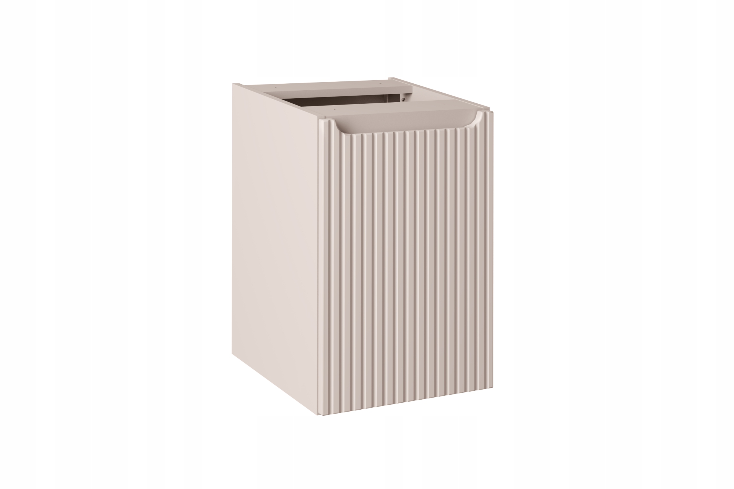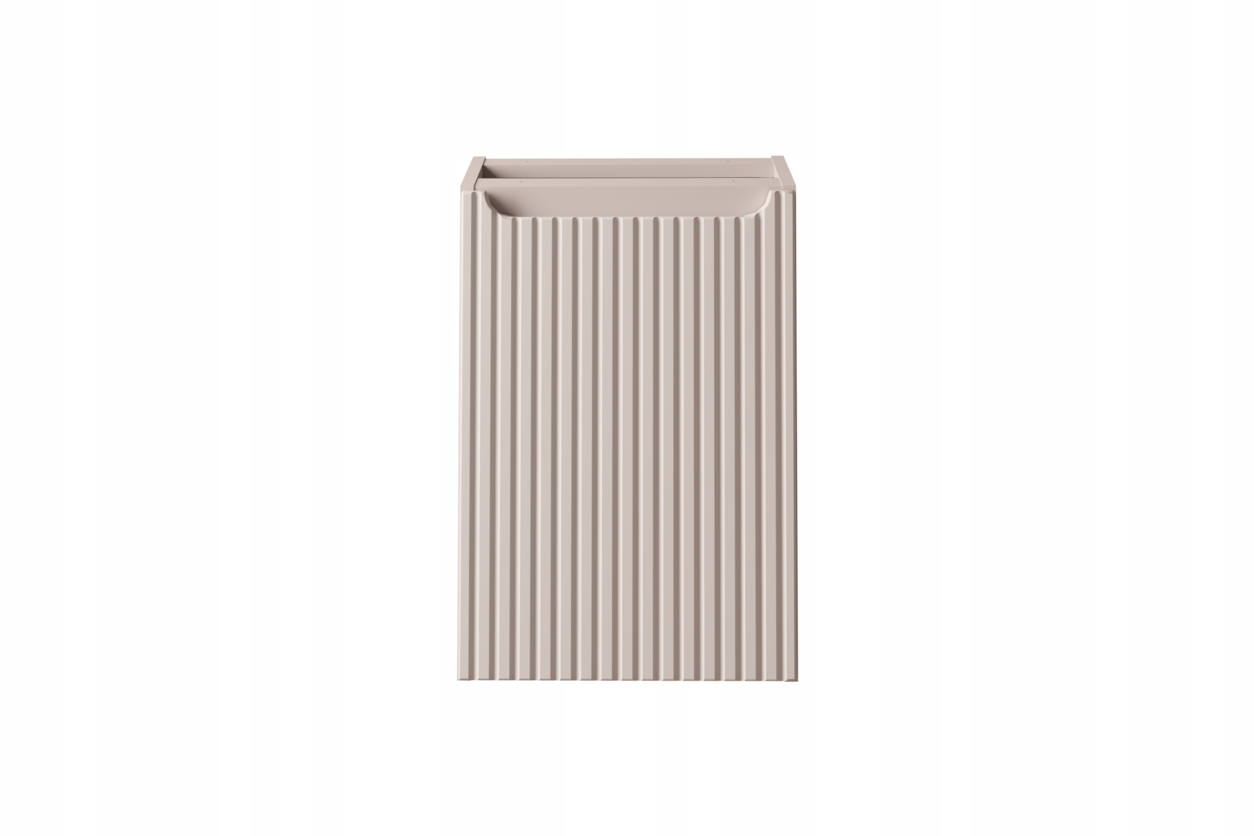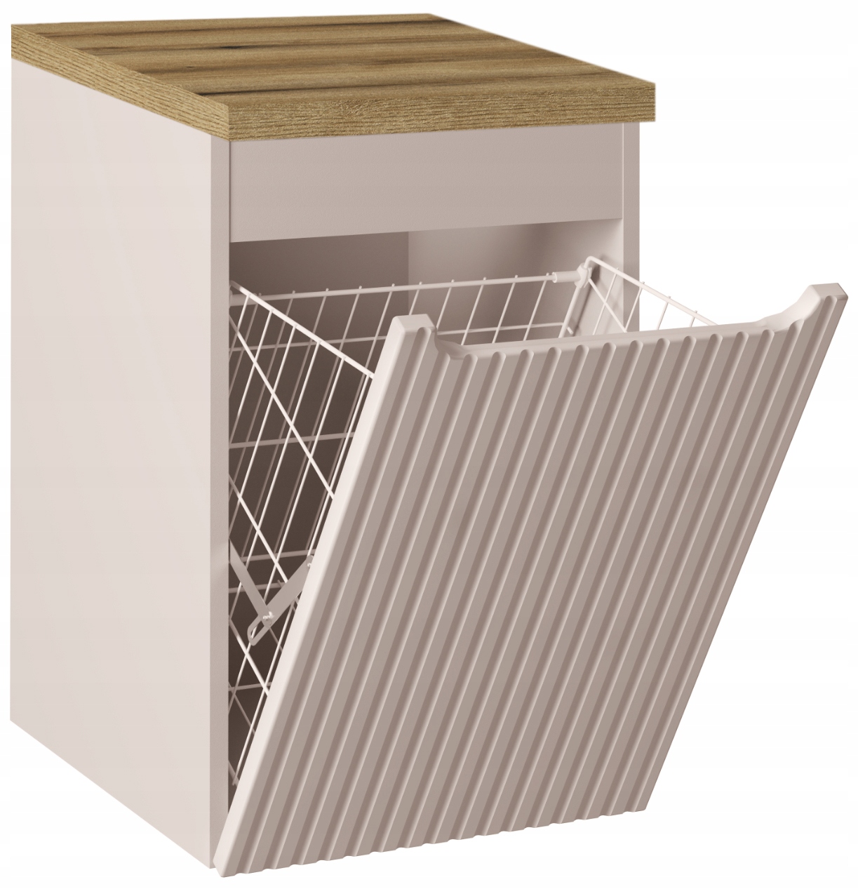 Kompaktowa szafka łazienkowa z kolekcji Nova Kaszmir o szerokości czterdziestu centymetrów to doskonałe rozwiązanie dla niewielkich łazienek, w których liczy się zarówno elegancja, jak i funkcjonalność. Mebel wykonany z lakierowanej płyty laminowanej i frontu MDF w matowym wykończeniu kaszmir wnosi do wnętrza spokój, harmonię i nowoczesny styl. Charakterystyczne pionowe ryflowania oraz frezowany uchwyt dodają całości subtelnej głębi i oryginalnego wyglądu. Zintegrowany kosz na pranie ukryty za drzwiczkami ułatwia organizację przestrzeni, zachowując estetyczny wygląd strefy łazienkowej. Wisząca forma mebla optycznie powiększa wnętrze i ułatwia sprzątanie. Blat w dekorze dąb Coast Evoke, wykonany z płyty MDF o grubości dwudziestu pięciu milimetrów, dopełnia całość, nadając meblowi przytulnego, naturalnego charakteru. Mniejsza głębokość bryły idealnie sprawdzi się w wąskich pomieszczeniach, nie zaburzając swobody poruszania się. Produkt przeznaczony do samodzielnego montażu. Meble Nova Kaszmir doskonale komponują się z innymi elementami tej samej serii lub kolekcji Nova Oak, umożliwiając tworzenie estetycznych, modułowych aranżacji dopasowanych do każdego wnętrza.