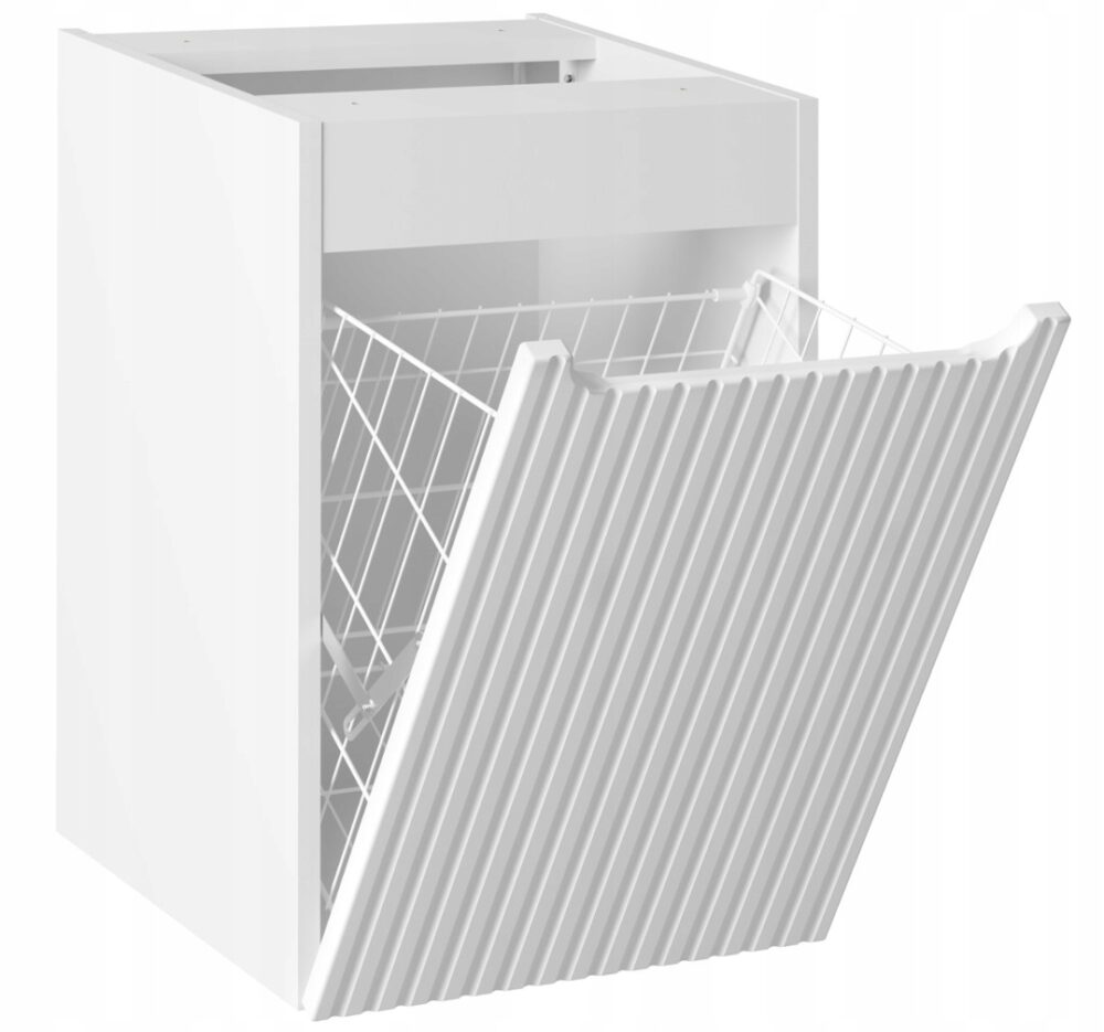 Szafka z kolekcji Nova Kaszmir to elegancka i praktyczna propozycja dla nowoczesnych wnętrz. Jej minimalistyczny design i ryflowane fronty podkreślają ponadczasową estetykę. Wyposażona w funkcjonalny kosz na pranie oraz drzwi z cichym domykiem, oferuje wygodę użytkowania i nowoczesny wygląd. Frezowany uchwyt i uniwersalne możliwości aranżacji sprawiają, że szafka doskonale wkomponowuje się w każdą łazienkę, umożliwiając stylowe i funkcjonalne przechowywanie. Produkt bez blatu w zestawie.