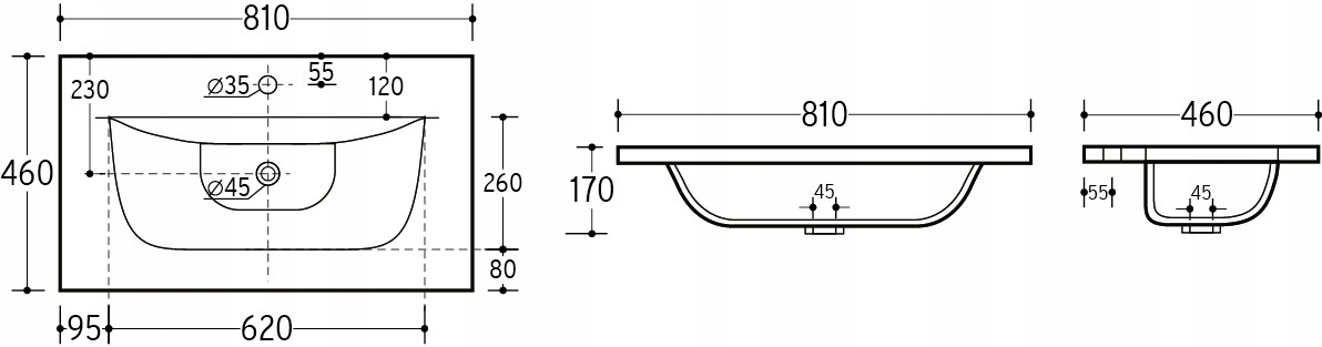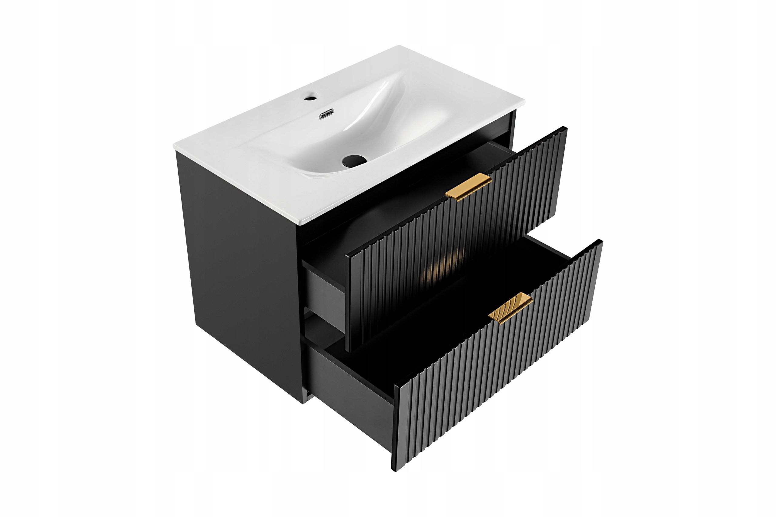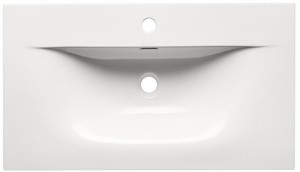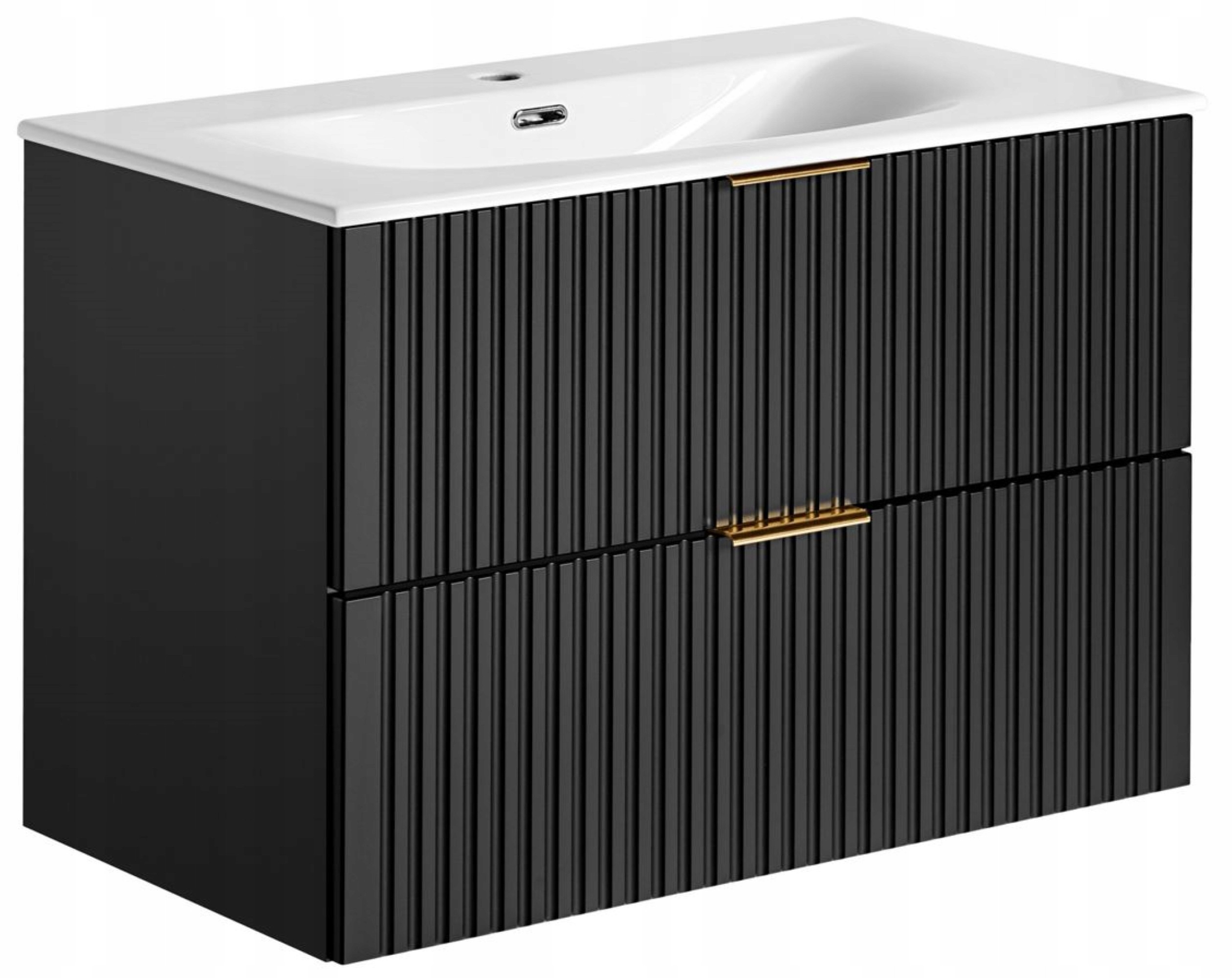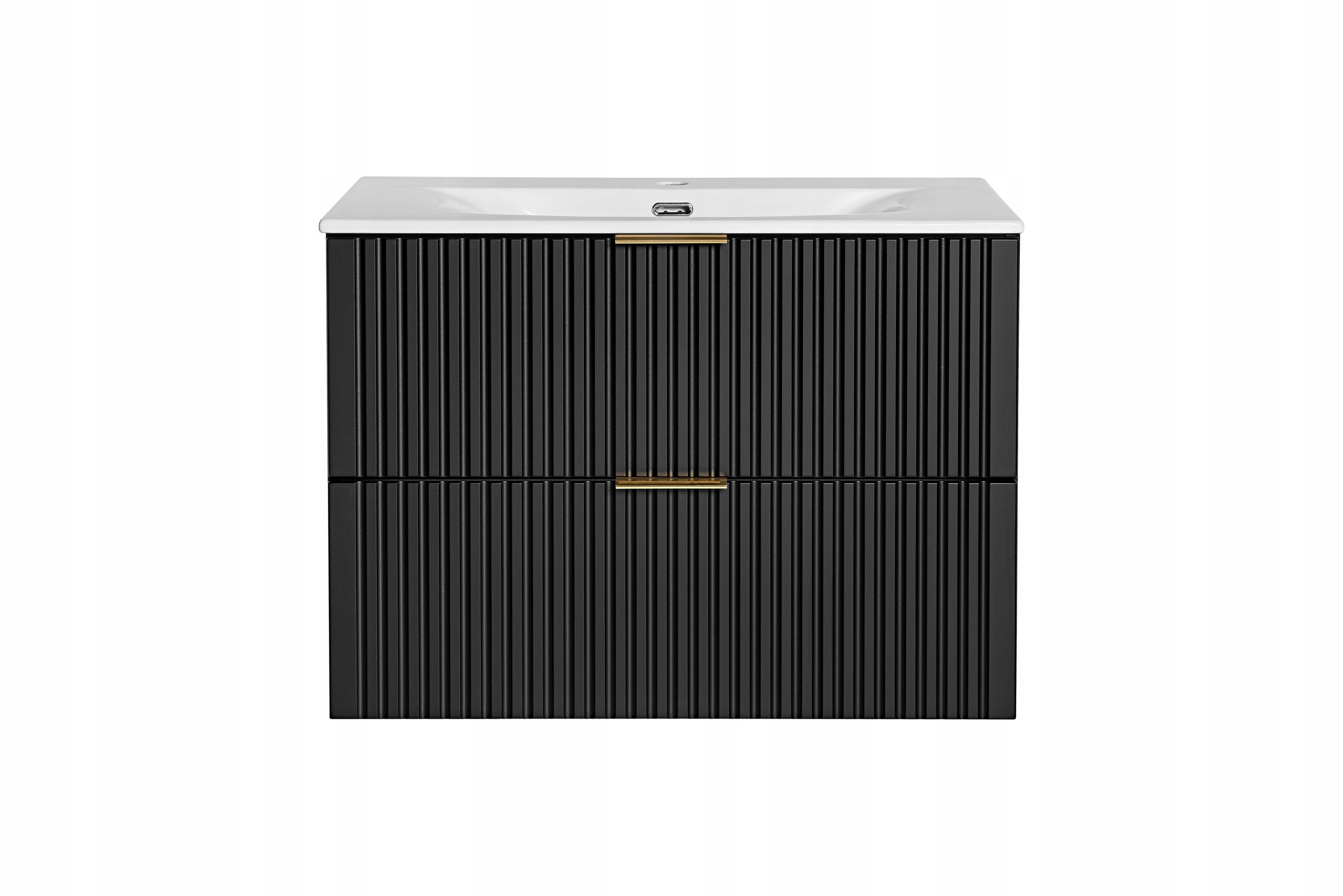 W zestawie znajduje się również ceramiczna umywalka o szerokości 81 cm, która idealnie dopasowuje się do bryły szafki i tworzy spójną, elegancką całość.