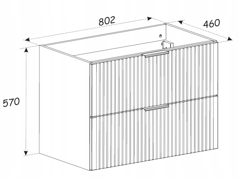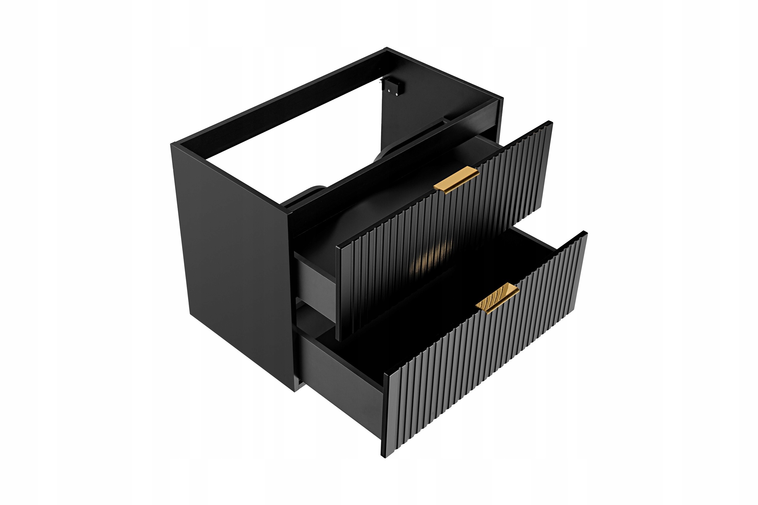 Szafka łazienkowa o szerokości 80 cm została wyposażona w dwie pojemne szuflady, które zapewniają wygodne przechowywanie akcesoriów łazienkowych. Zastosowane prowadnice z systemem soft close gwarantują płynne i ciche zamykanie, zwiększając komfort codziennego użytkowania.